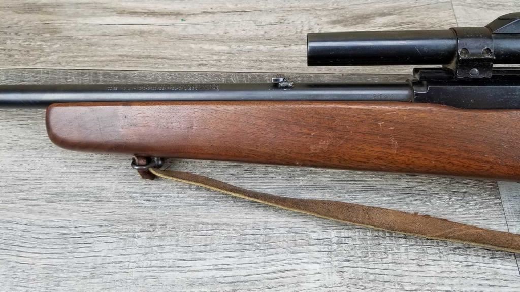 COMES WITH VINTAGE WEAVER V22 SCOPE AND RINGS. NO MAG.