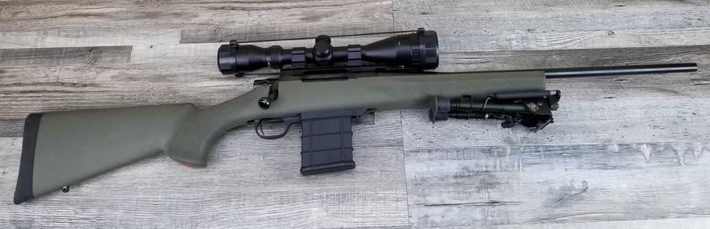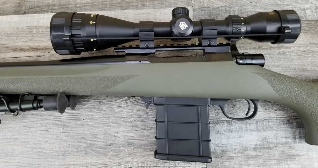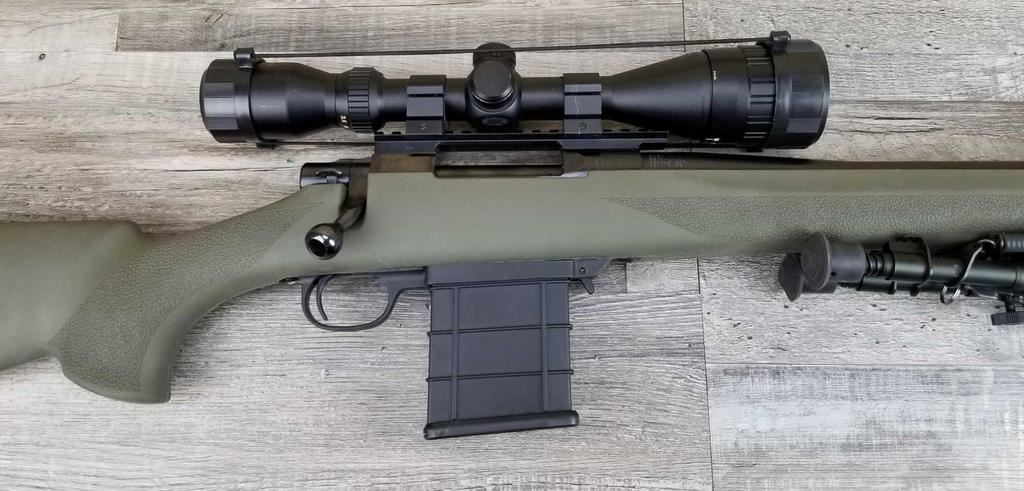 LOOKS AS NEW. WITH HOGUE OVERMOLD STOCK, NIKKO STERLING 3.5-10X44 SCOPE, BIPOD, AND TEN ROUND MAG.