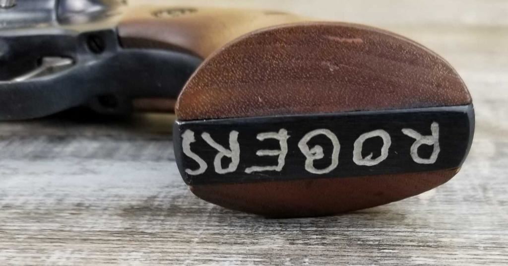SHOWS USEAGE, HOLSTER WEAR, NAME CARVED INTO BOTTOM OF BUTT.