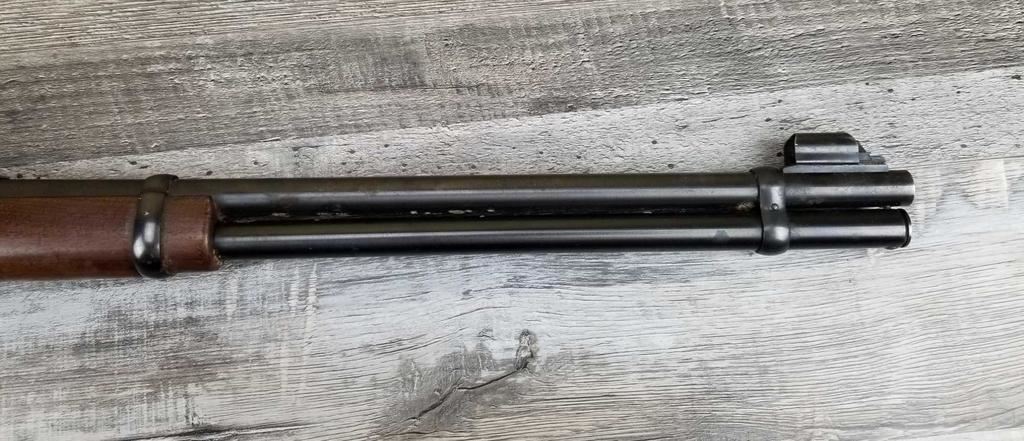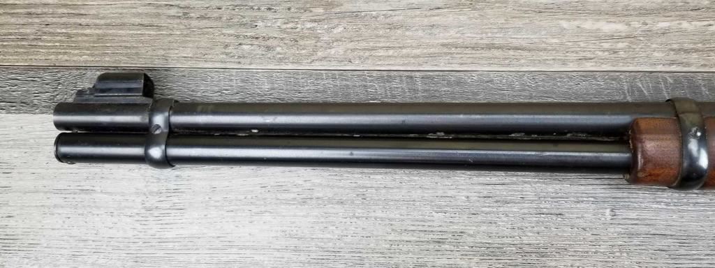 SHOWS SOME FRECKLING AND HANDLING MARKS. HAS WHAT APPEARS TO BE DRIED OIL OR GREASE ON BUTT PLATE. SOME RUSTING ON BARREL BOTTOM.