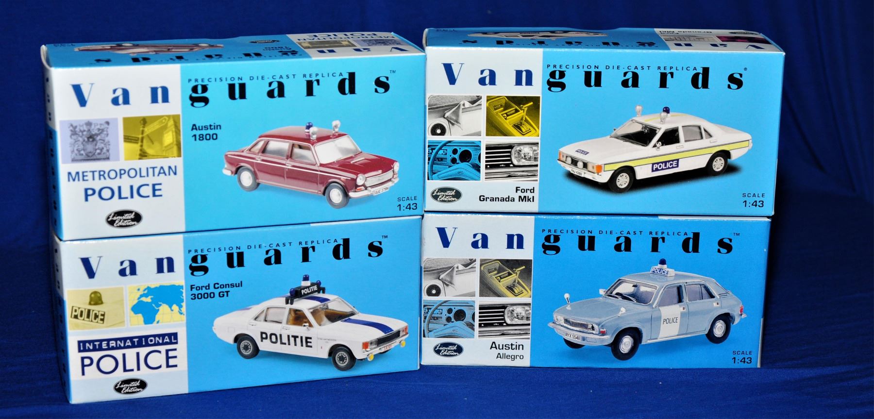 1) austin 1800 Metropolitan Police 2) Ford Granada Mk1 Police car 3) Ford Consul 300GT International Police 4) Austin Allegro Police car all in original packages
