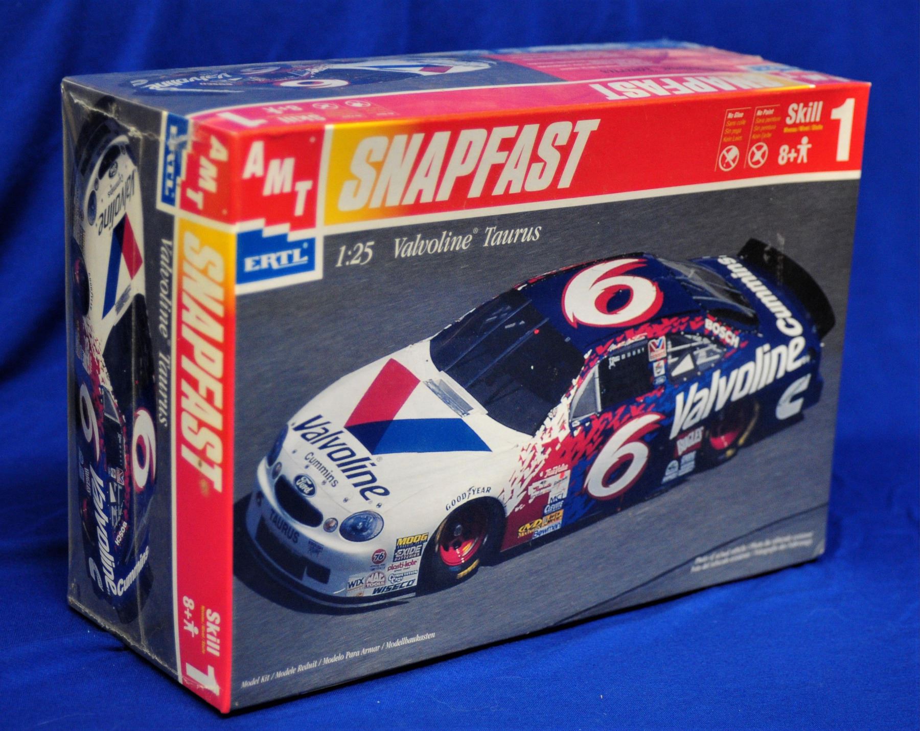 1) Racing Champions 1:24 scale die cast replica of Mark Martin's #6 Ford 2) Revell Snaptite 1:24 scale Mark Martin's #6 Valvpline Ford Taurus no glue or paint required 3) AMT 1:25 scale plastic model kit of Mark Martin's #6 Thunderbird 4) AMT Snapfest model kit of Mark Martin's #6 Ford Taurus no glue and paint required