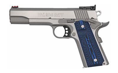 Colt's Manufacturing, Gold Cup Lite, Semi-automatic, 1911, Full Size, 9MM, 5" Barrel, Stainless Steel Frame, Brushed Stainless Steel Finish, G10 Grips, 9Rd, 1 Magazine, Right Hand, Upswept Beavertail Grip Safety, Thumb Safety, Fiber Optic Front & Adjustable Rear Sights