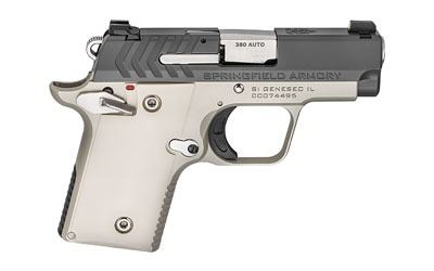 Springfield, 911, 1911 Micro Compact, 380ACP, 2.7" Barrel, Alloy Frame, Platinum Finish, Graphite Cerakote Slide, 2 Magazines, 1-6Rd & 1-7Rd, Engineered Ivory Grips, Tritium Night Sights