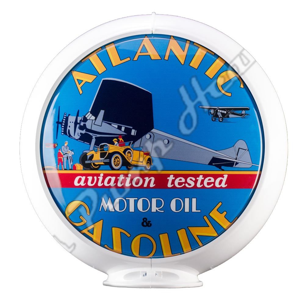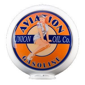 DONATION: Gas Pump Heaven is one of the largest manufacturers of reproduction gas pumps and parts in the region. This is a donation for the collector! Ron and Billi Carey have donated these 4 globes. Complete Globe consists of 2 Glass Lenses in and a plastic body frame with a base size of 13 1/2”. The four globes consist of, Atlantic Gasoline, Gilmore Record Breaker, Union Aviation and Union 76.