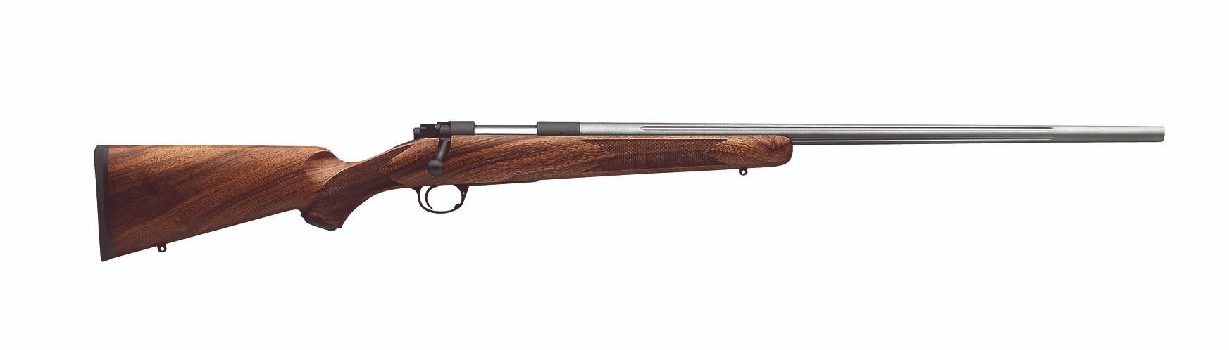 Stainless steel barrel, match grade chamber, adjustable trigger, A-grade walnut.