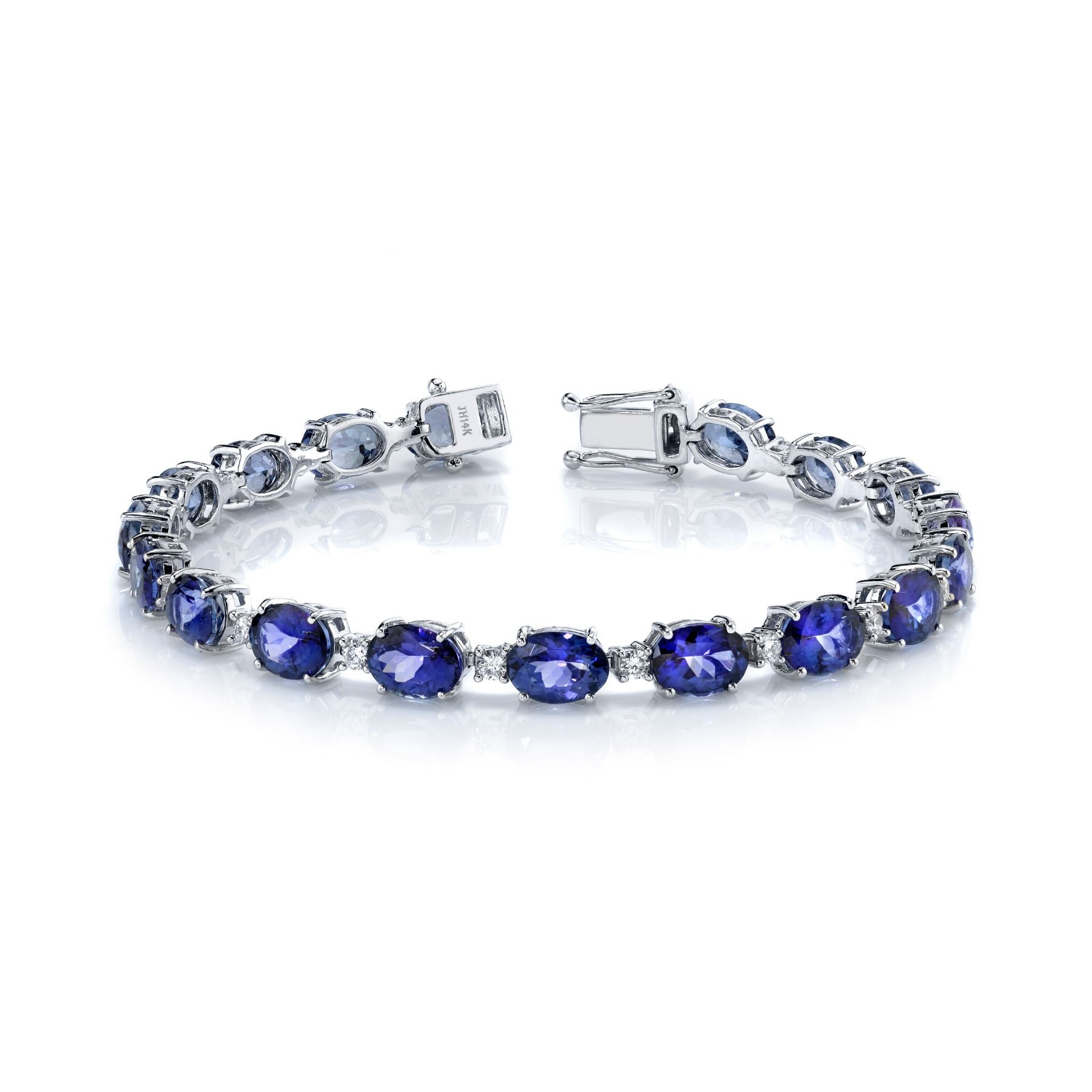 DONATION: Tanzanite & diamond bracelet set in 14 karat white gold. Tanzanite is violet bliue in color. Tanzanite is 18.75 carats total in weight and 1.00 carats of white diamonds color is G in color and Vs in clarity.