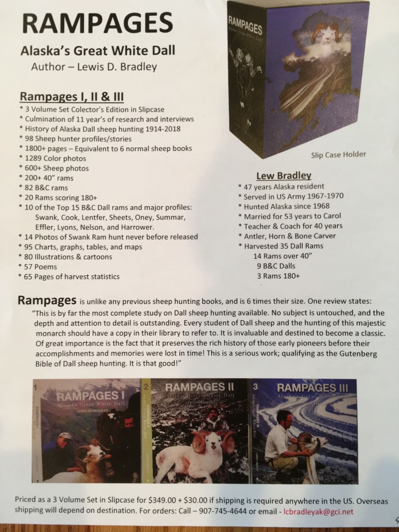 Description: 3 volume collector's edition in slipcase. History of Alaska Dall Sheep Hunting from 1914-2018
