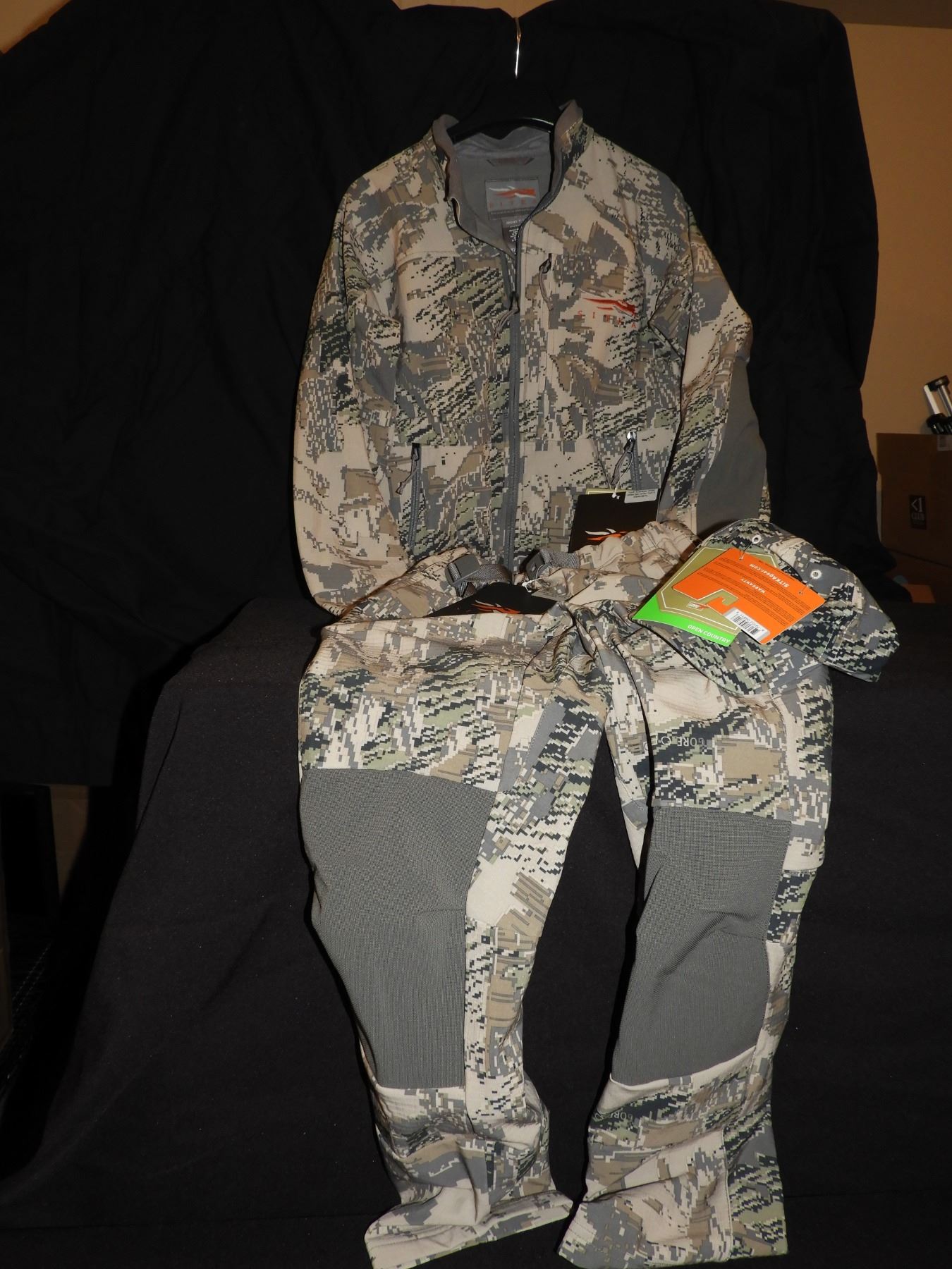 Description: No Exchange on this Item. Sitka Jacket and pants, optifade camo, Scrambler size YL and a hat