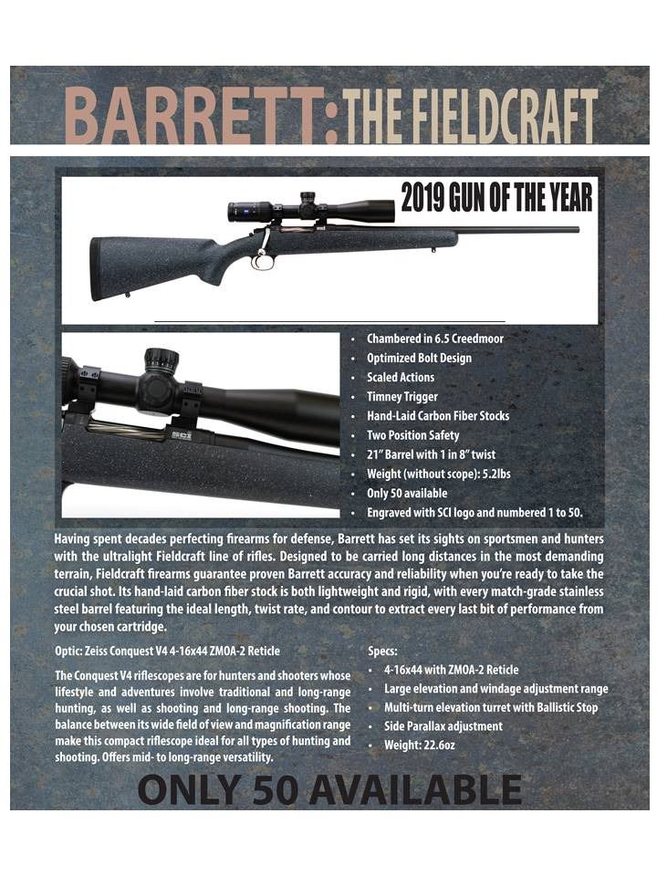 Lot 17A Barrett: Fieldcraft 6.5 Creedmoor - SCI Rifle of the Year 2019