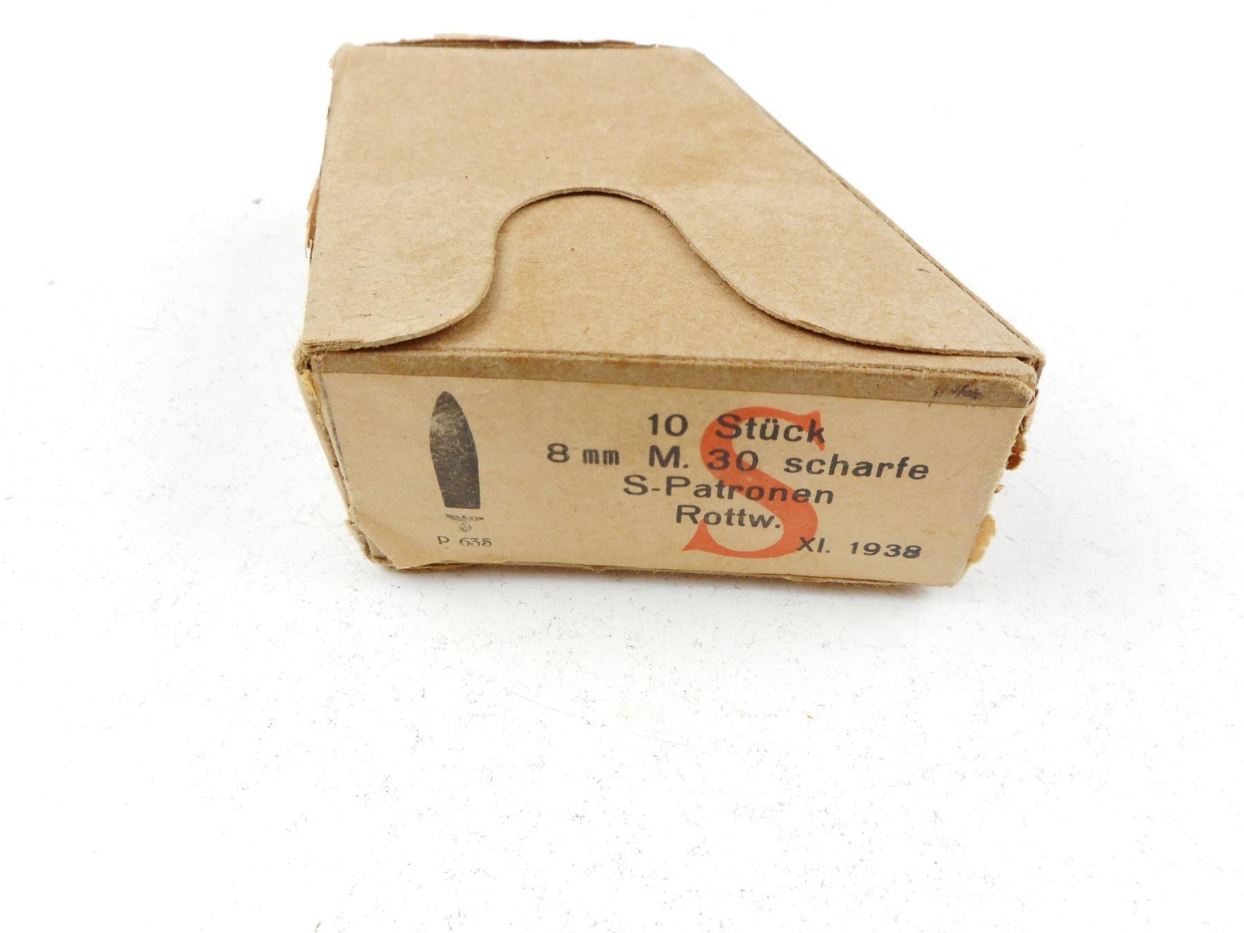 Lot 1831 1938 DATED GERMAN STAMPED AMMUNITION FOR AUSTRIAN M95MANNLICHER SERVICE RIFLE, 8MM, STEYR, ON ORIGIN