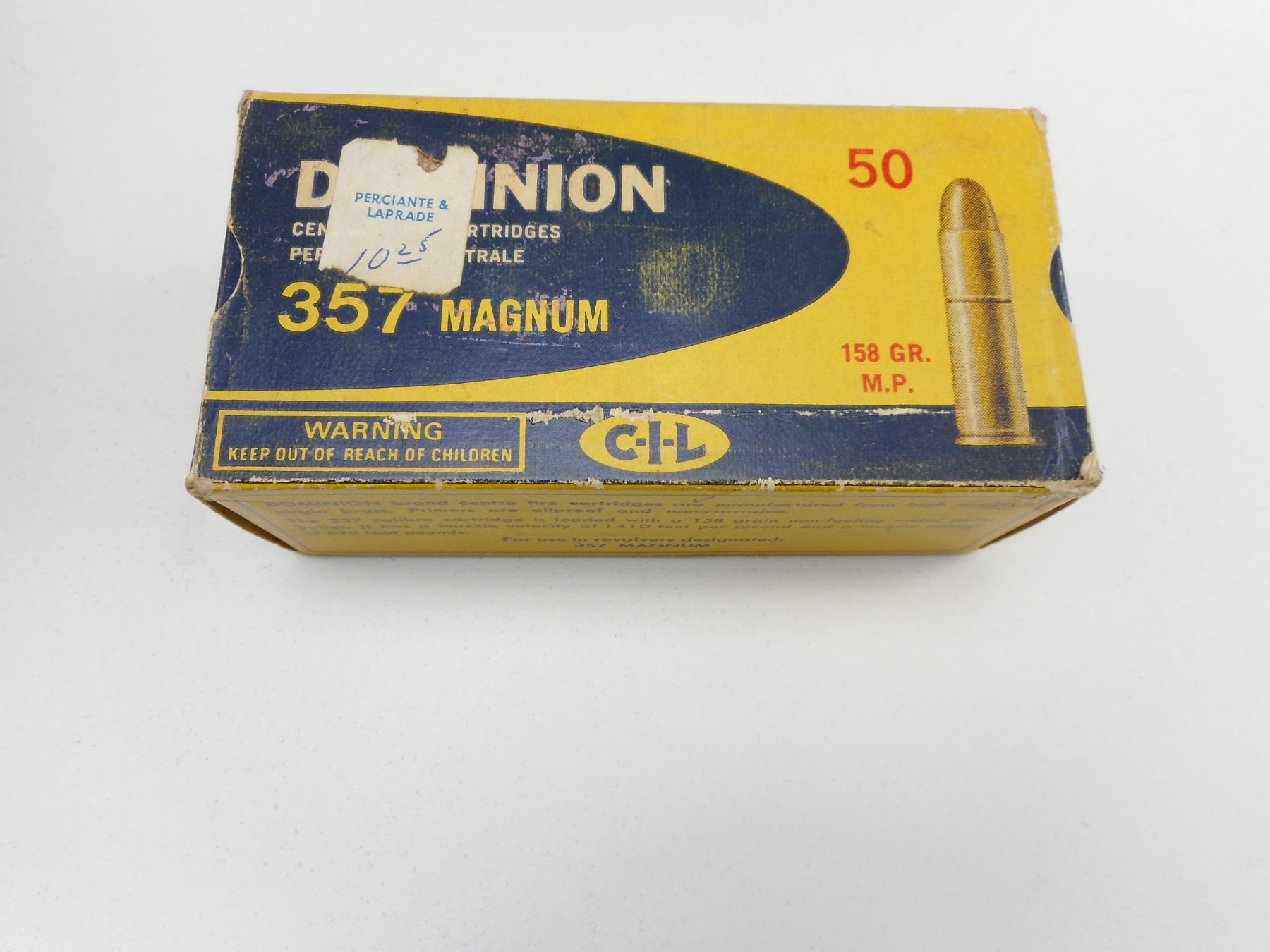 357 MAGNUM AMMO , 47 RNDS DOMINION 357 MAGNUM AMMO IN VINTAGE DOMINION BOX