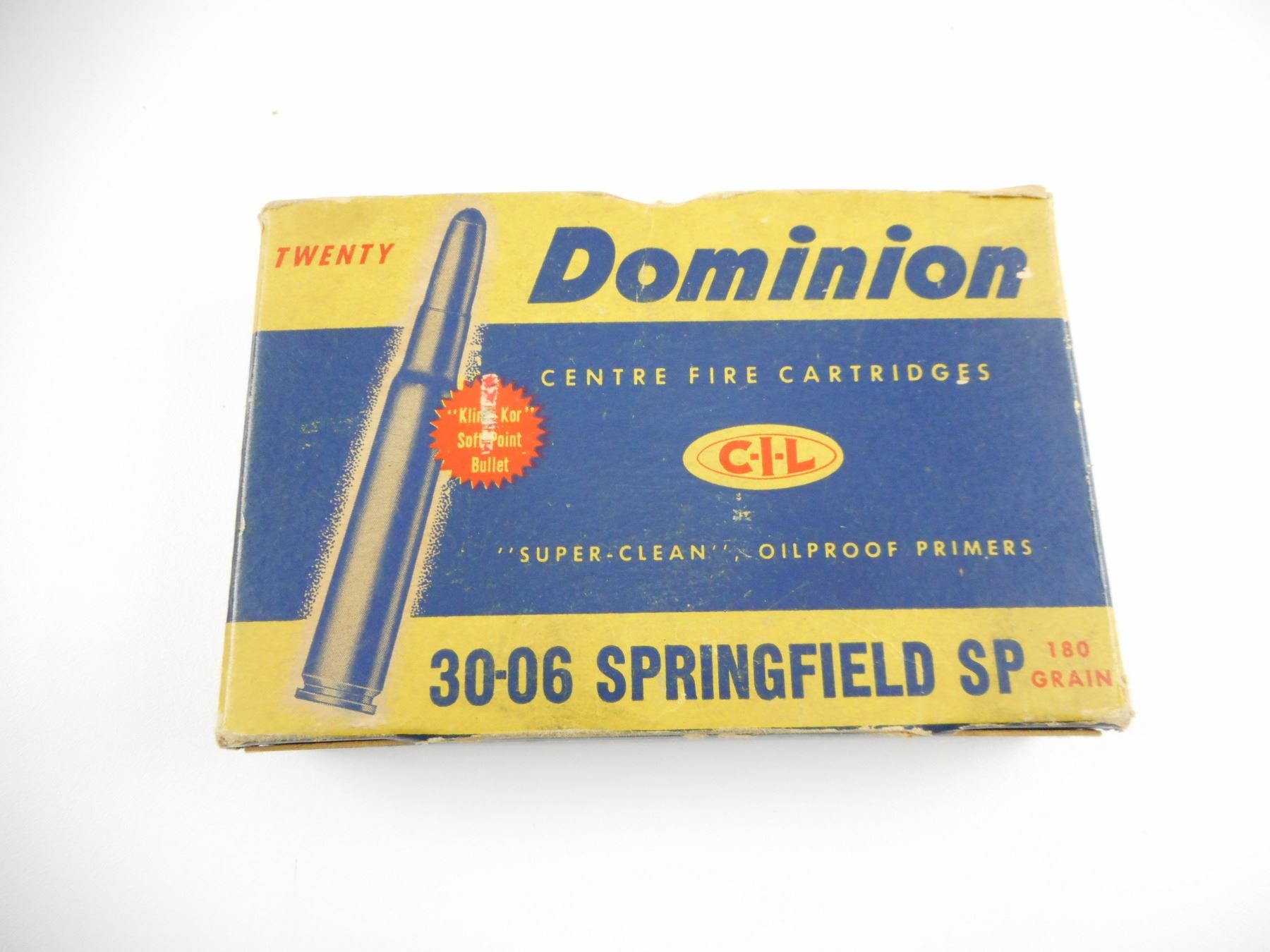 DOMINION 30-06 SPRINGFIELD AMMO , 20 RNDS 30-06 SPRINGFIELD SP AMMO IN VINTAGE DOMINION BOX