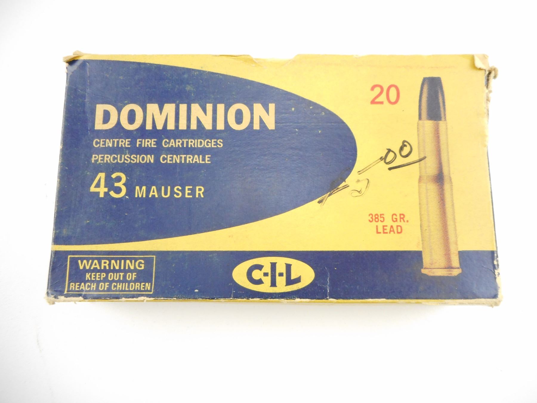 43 MAUSER AMMO , 20 RNDS 43 MAUSER AMMO, IN VINTAGE DOMINION BOX