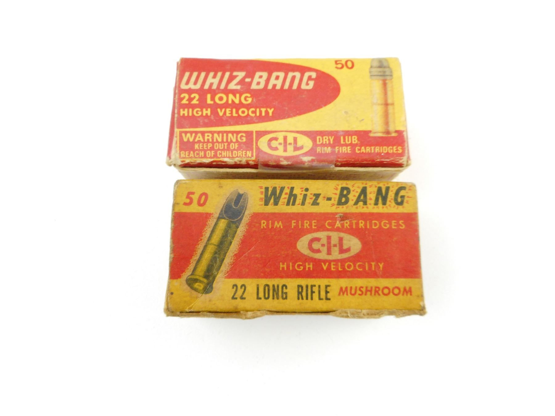 22 LONG RIFLE AMMO , 51 RNDS 22 LONG RIFLE AMMO, WHIZ-BANG CIL, IN VINTAGE CIL BOXES