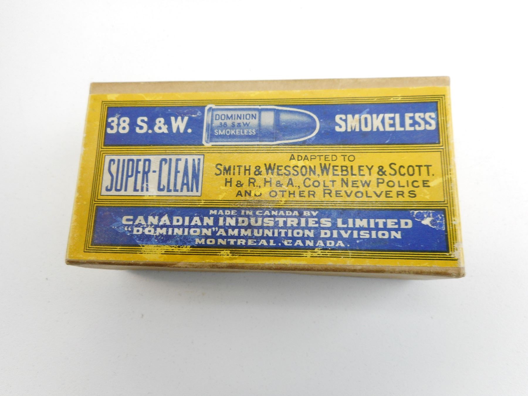 38 S & W AMMO , 50 RNDS 38 S & W DOMINION AMMO, IN VINTAGE DOMINION SUPER CLEAN BOX