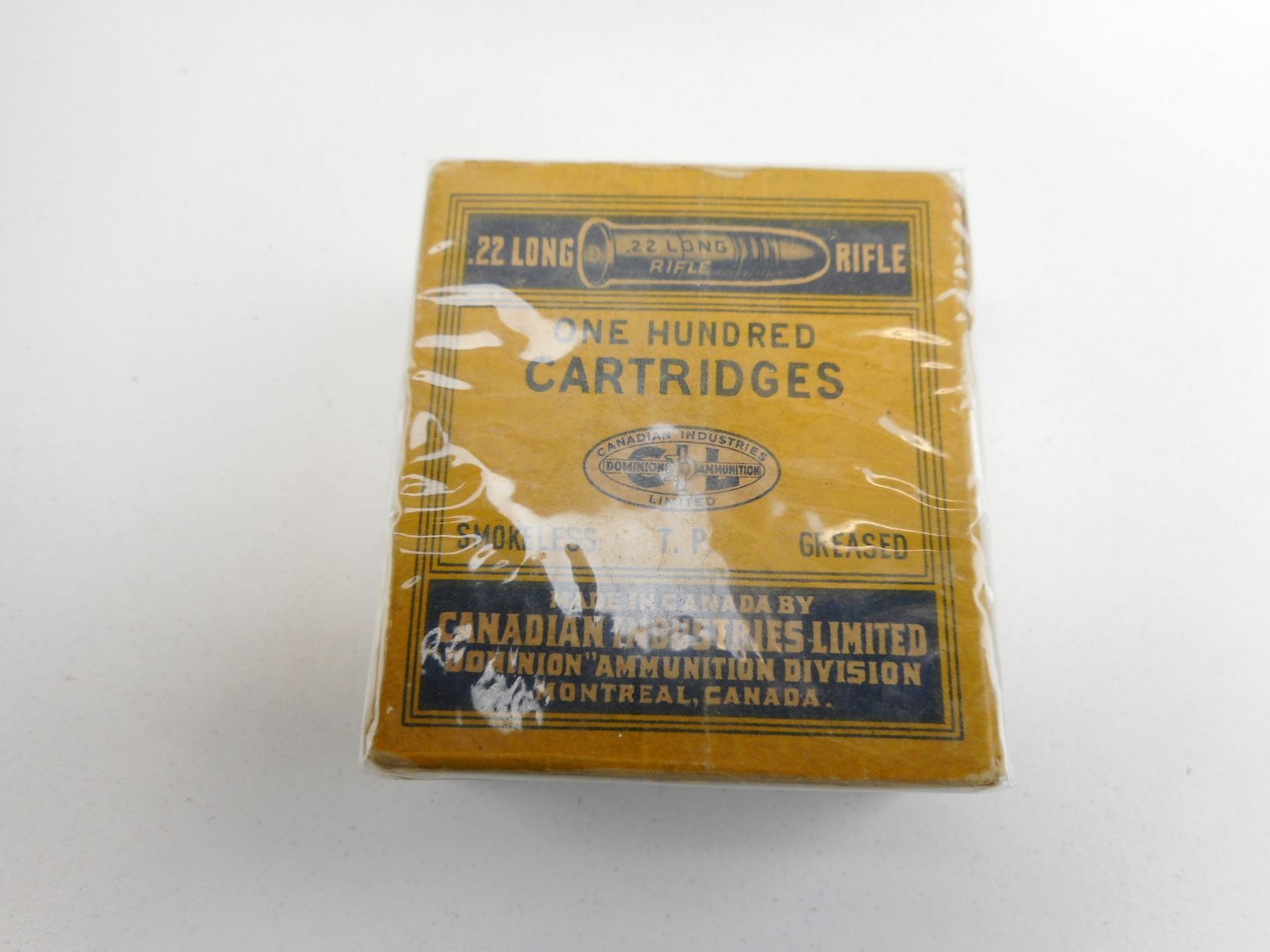 .22 LONG RIFLE AMMO , 100 RNDS .22 LONG AMMO, IN SEALED VINTAGE CIL BOX