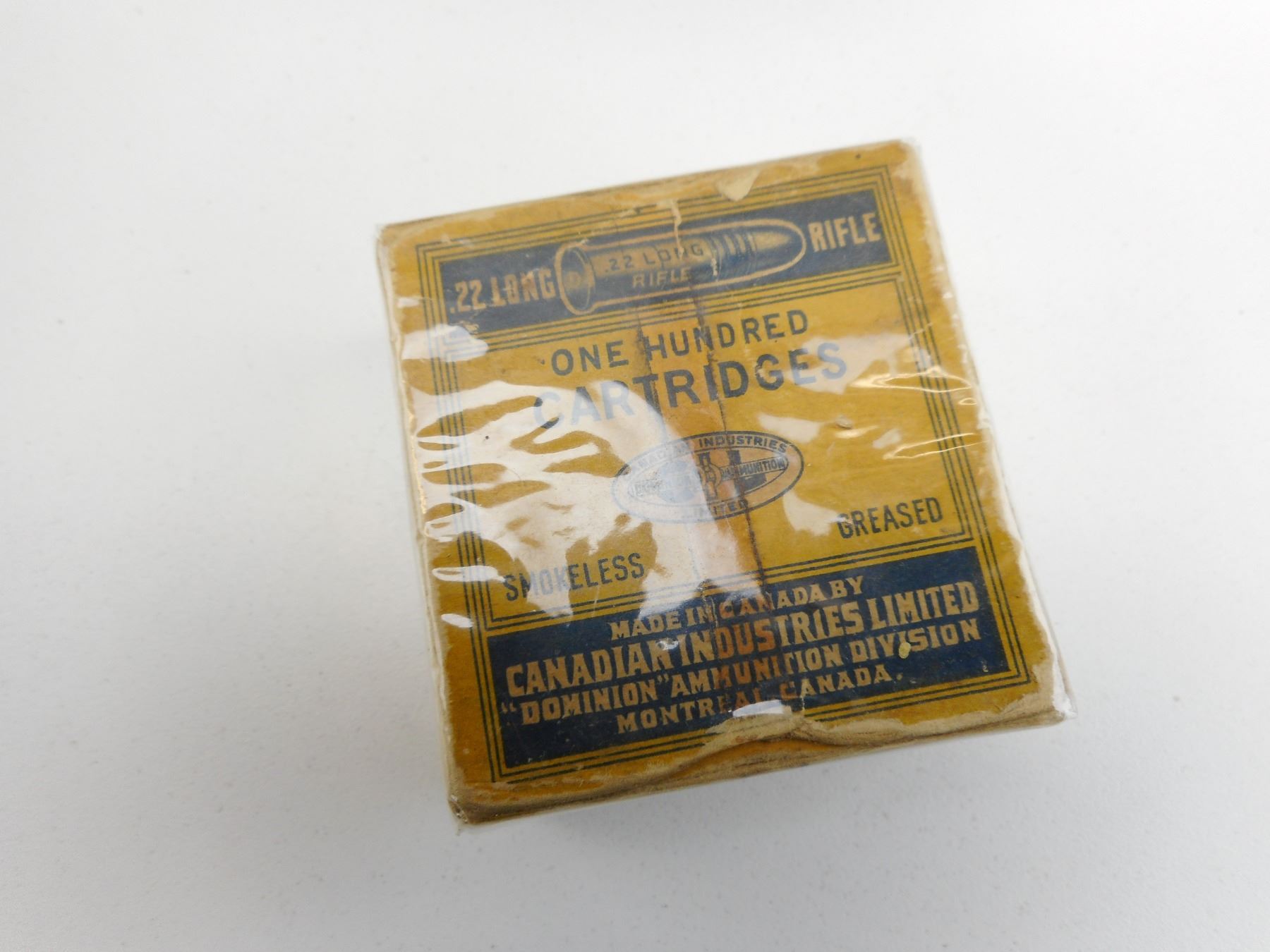 .22 LONG RIFLE AMMO , 100 RNDS .22 LONG AMMO, IN SEALED VINTAGE CIL BOX