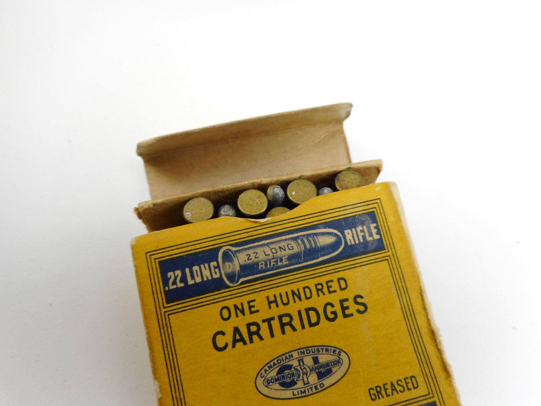 DOMINION .22 LR AMMO , 100 RNDS DOMINION .22 LR AMMO,DATED DECEMBER 9,1938, CDN BROAD ARROW, SEALED VINTAGE DOMINION BOX