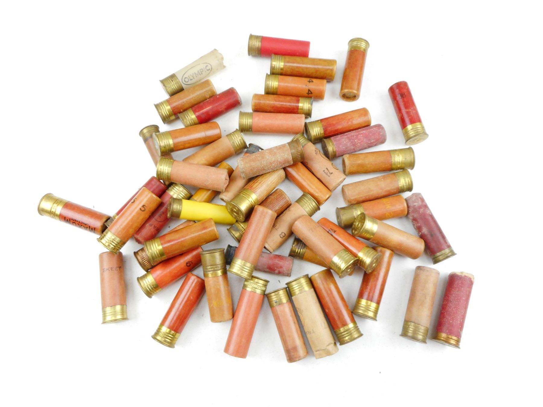 ASSORTED SHOTGUN SHELLS, LARGE AMOUNT OF 12 GAUGE, SOME 16 AND 18 GAUGE , 48 SHOTGUN SHELL RNDS, 4 BRASS, LARGE AMOUNT OF 12 GAUGE, SOME 16 AND 18 GAUGE. IN BAG