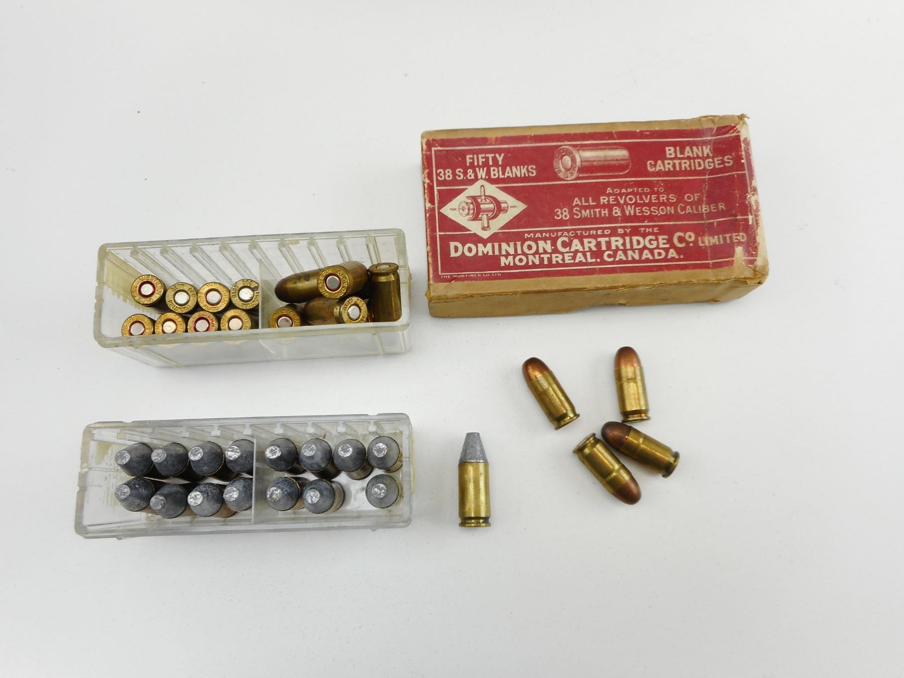 Lot 2026 380 AUTO AMMO, .358 AMMO, 38 S&W BLANKS & BRASS IN VINTAGE DOMINION BOX
