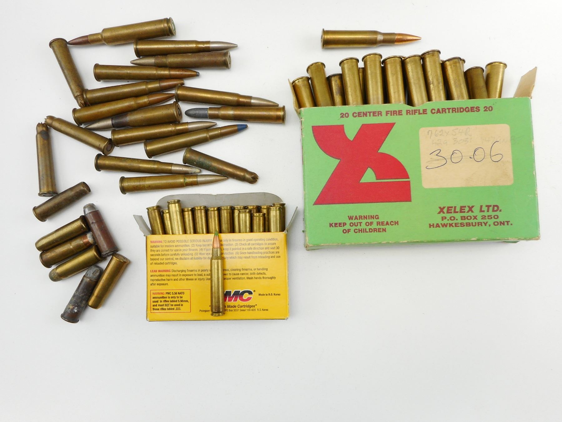 5.56 NATO PMC AMMO, 7.62X54R AMMO, 44-40 AMMO,.303 BRITISH AMMO, .270 MAG, .303 BLANKS , 15 RNDS 5.56 NATO AMMO, 18 RNDS 7.62 X54R, 7 RNDS 44-40 AMMO, 12 RNDS 303 BRITISH AMMO, SOME WWII ERA, 1 RND .270 MAG, 4 .303 BLANKS