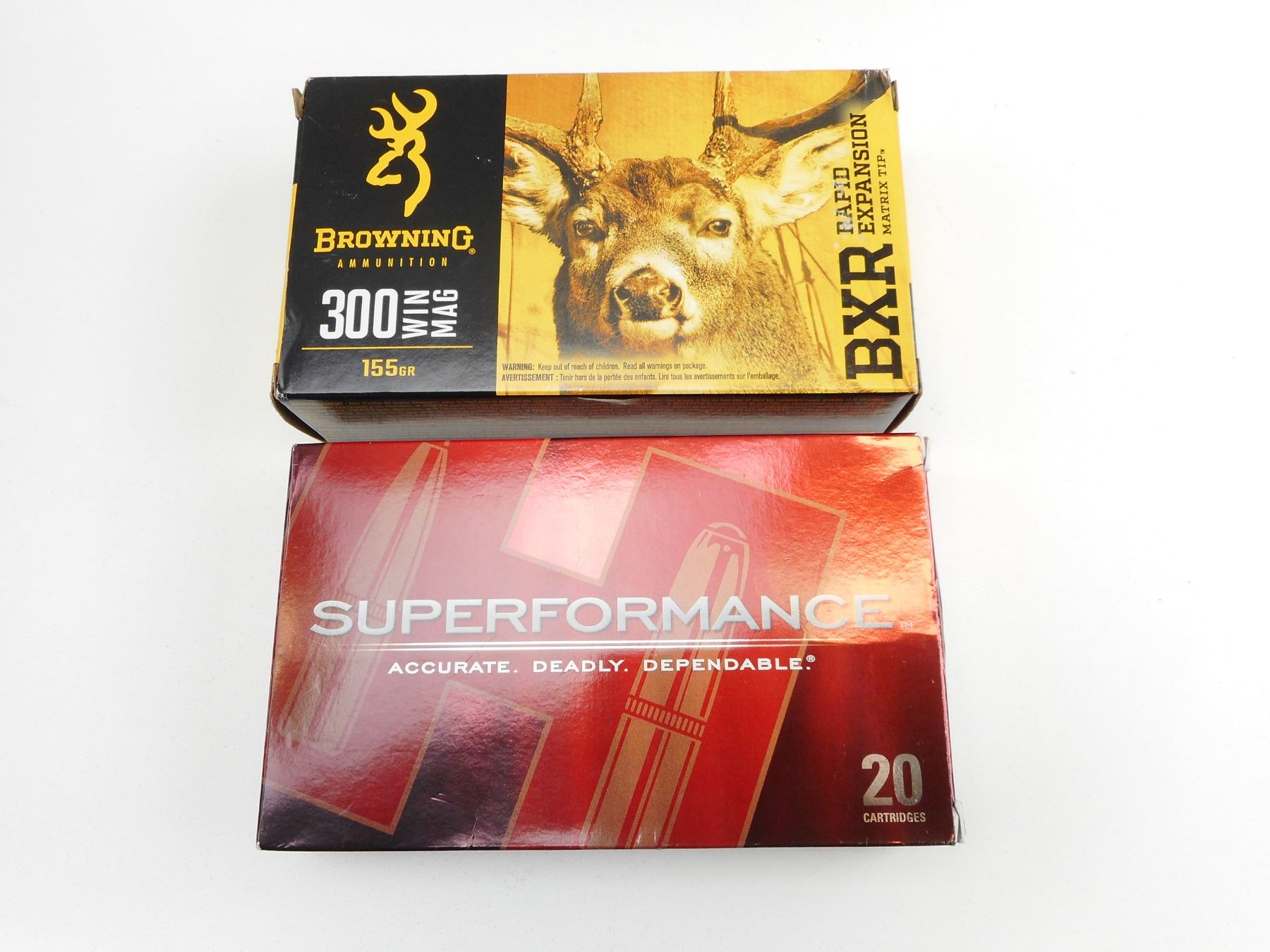ASSORTED 300 WIN MAG AMMO, 300 WIN MAG BRASS , 18 RNDS BROWNING 300 WIN MAG, 155 GRNS, 9 RNDS HORNADY SUPERFORMANCE 300 WIN MAG, 180 GRNS, 11 BRASS