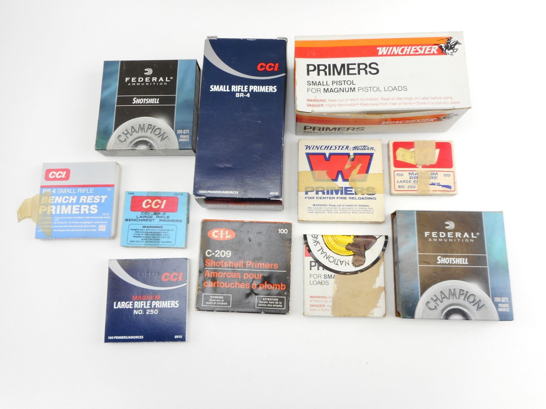 Lot 2046 ASSORTED PRIMERS SMALL RIFLE BR-4, SMALL PISTOL FOR MAGNUM, BR-4 SMALL RIFLE, SHOTSHELL PRIMERS, LAR