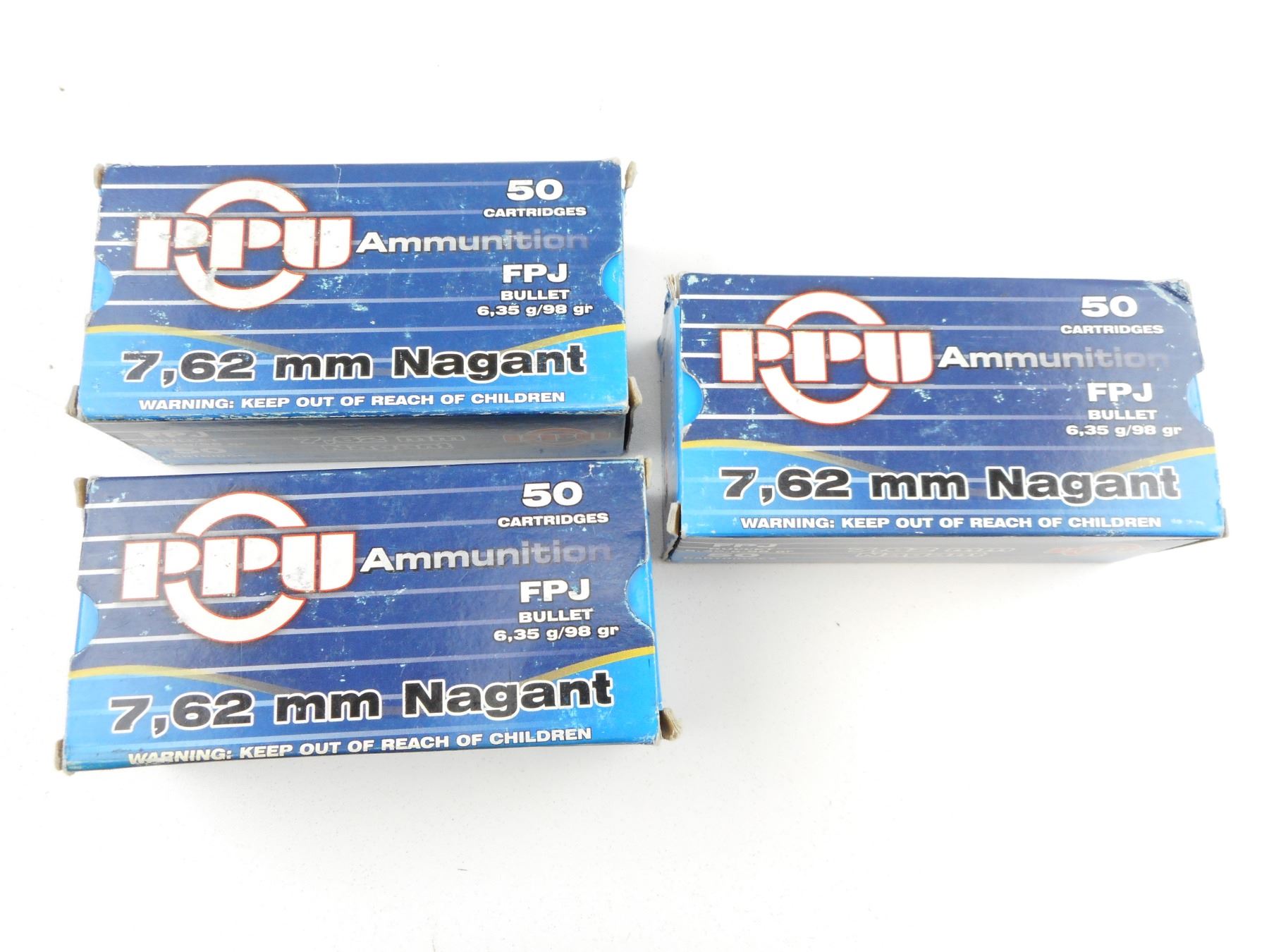 7.62MM NAGANT AMMO , 150 RNDS PPU 7.62MM NAGANT AMMO, 98 GRNS, FPJ AMMO