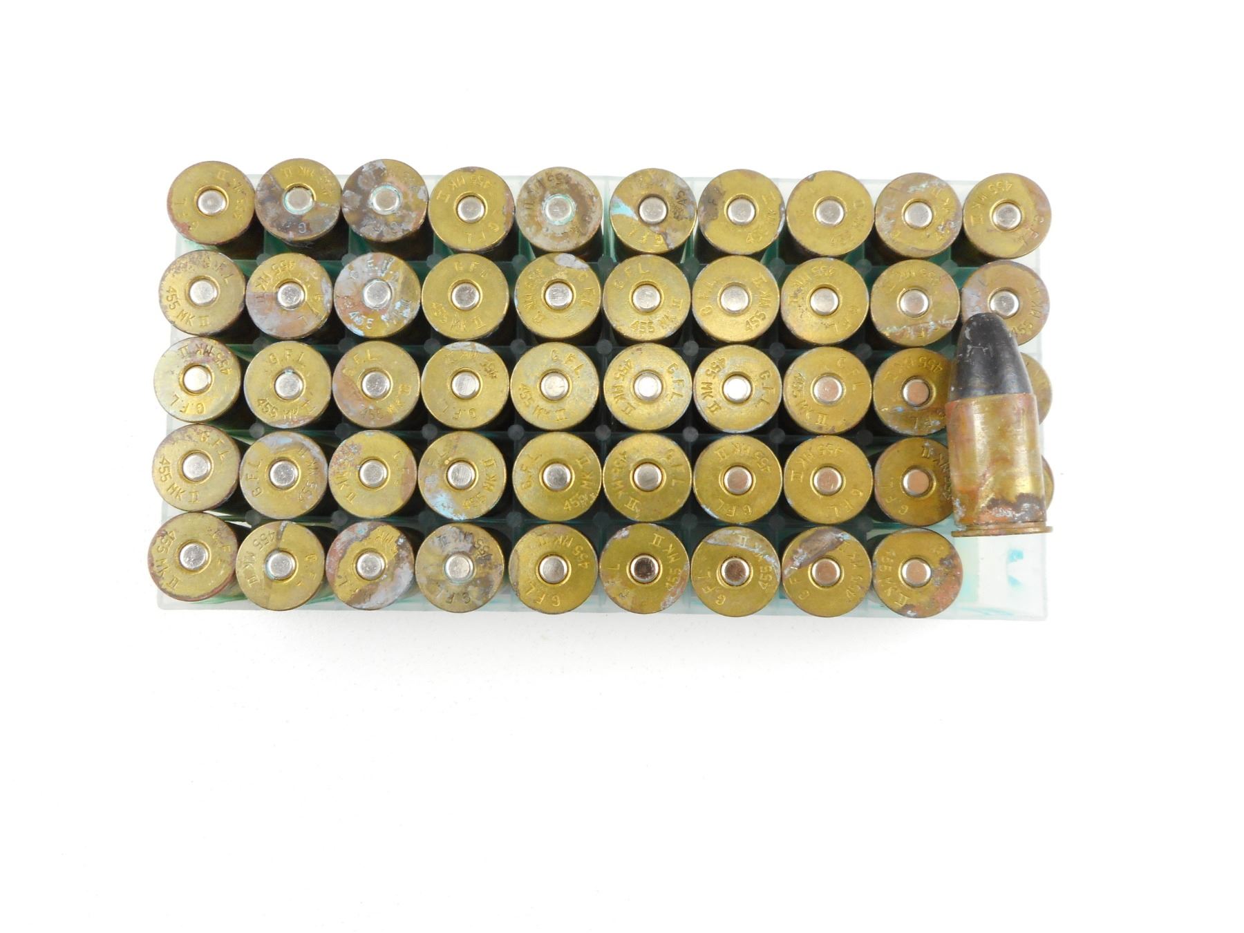 .455 MK II AMMO , 50 RNDS .455 MK II, HEAD STAMPED G.F.L. 455 MK II.