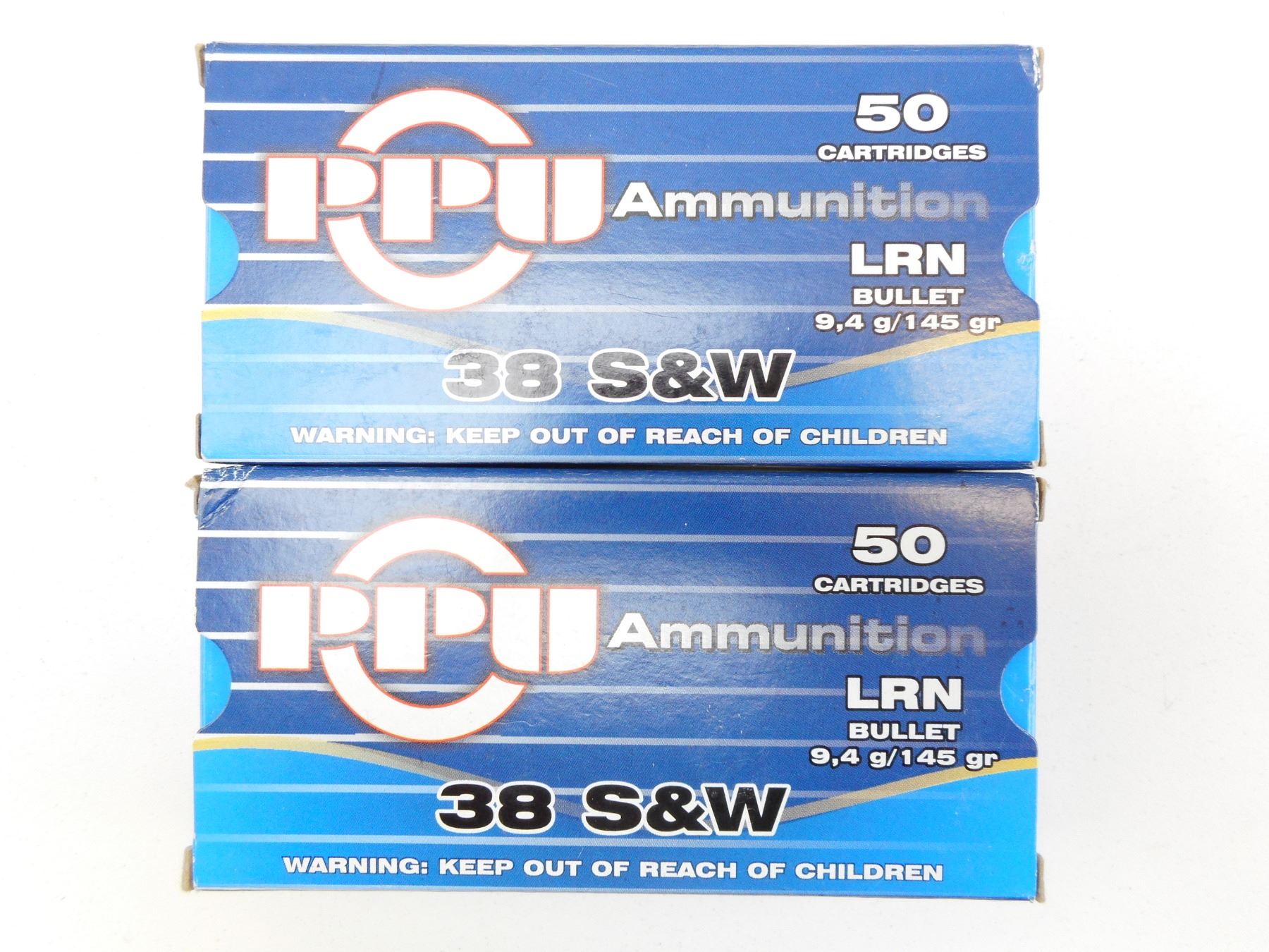 PPU 38 S & W AMMO , 100 RNDS PPU 38 S & W, LRN, 145 GRNS AMMO