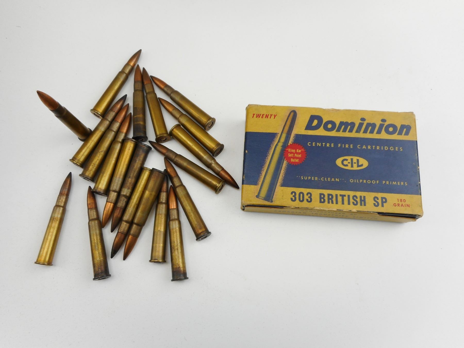 303 BRITISH AMMO ASSORTED , 31 RNDS 303 BRITISH AMMO ASSORTED, SOME IN VINTAGE DOMINION BOX