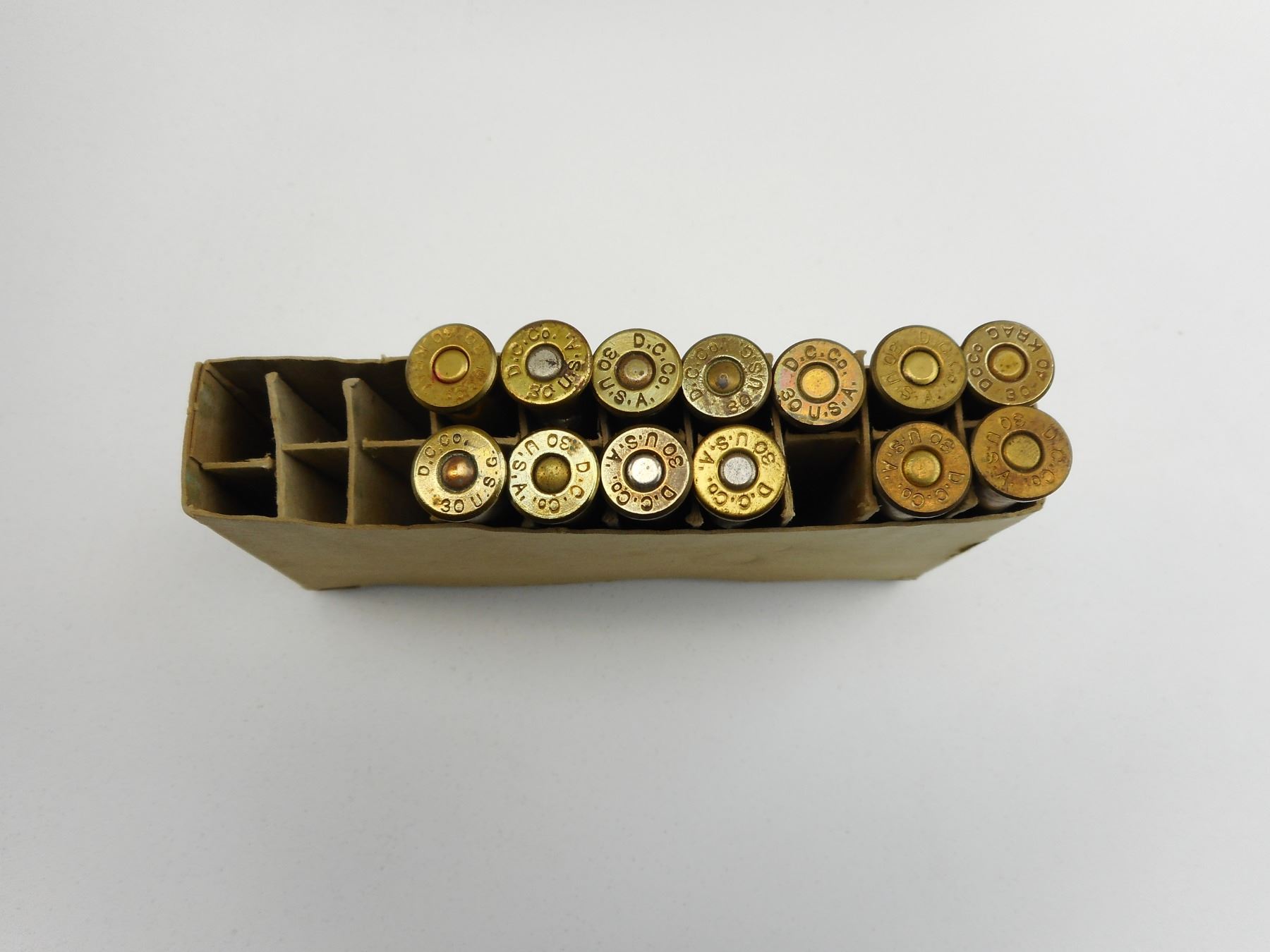 30-40 KRAG AMMO , 13 RNDS 30-40 KRAG AMMO, HEAD STAMPED D.C. CO. 30-40 KRAG, D.C. CO 30 USA