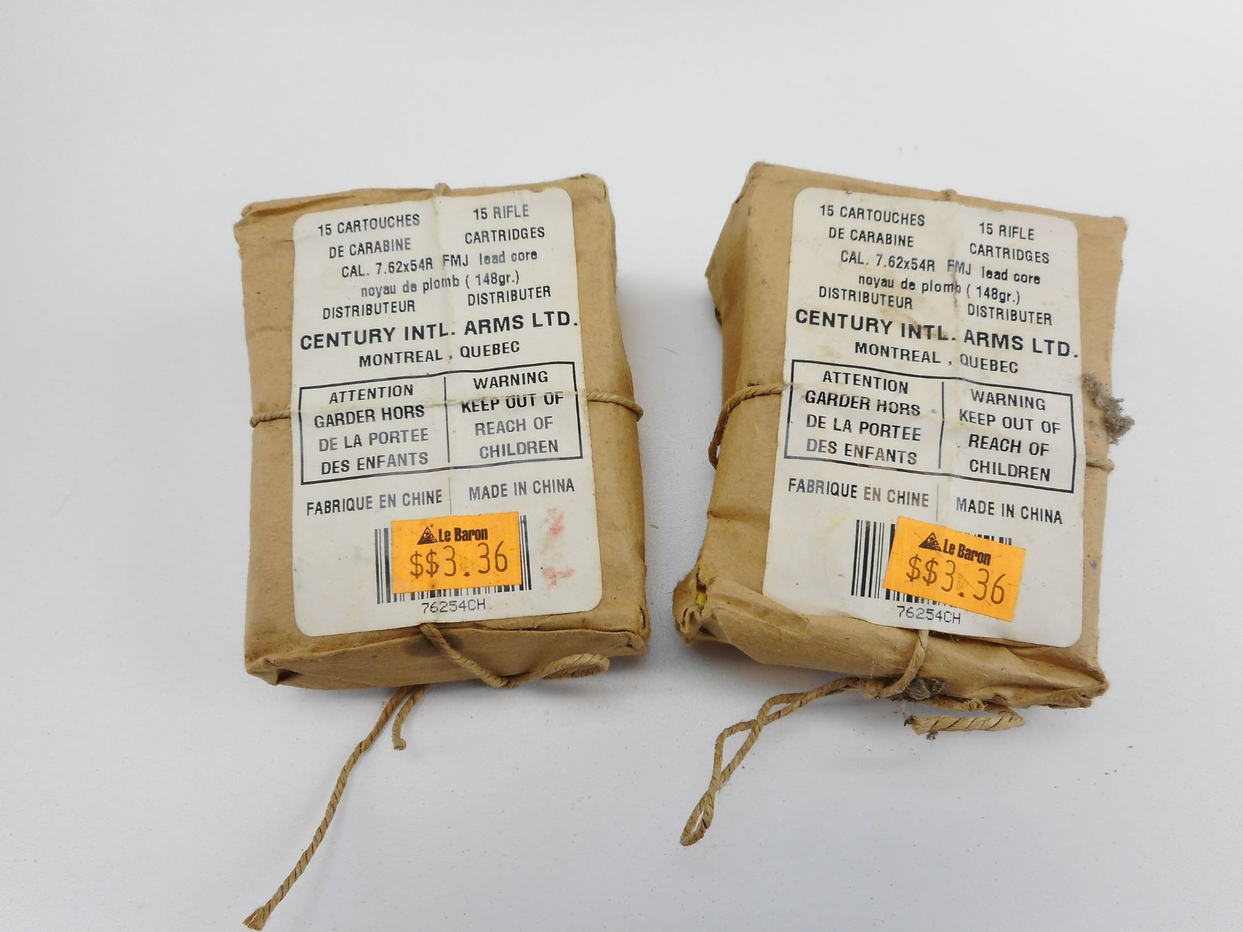 7.62 X 54R AMMO ON STRIPPER CLIPS , 30 RNDS 7.62 X 54R, CENTURY INTL. ARMS LTD. AMMO, 148 GRNS, FMJ