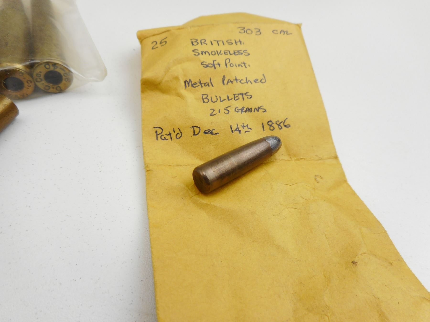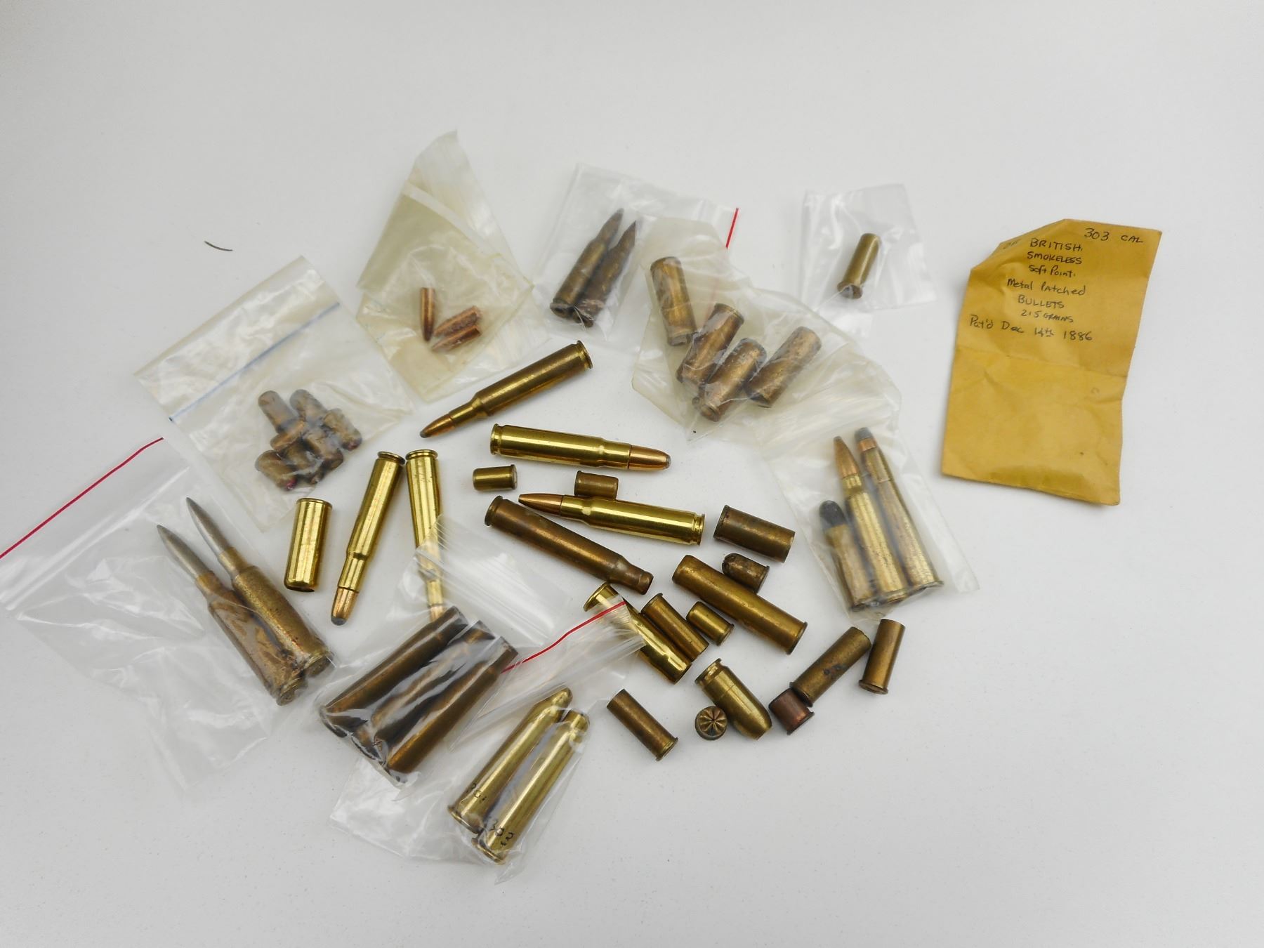 ASSORTED BLANKS, SOME PRIMED, SOME WITH BULLETS , APPROX 45 BLANKS, SOME PRIMED, SOME HAVE BULLETS, INCLUDING 303, 32-40, 32 S&W, 32-40, 45 COLT, 32-44, 244 REM. BLANKS