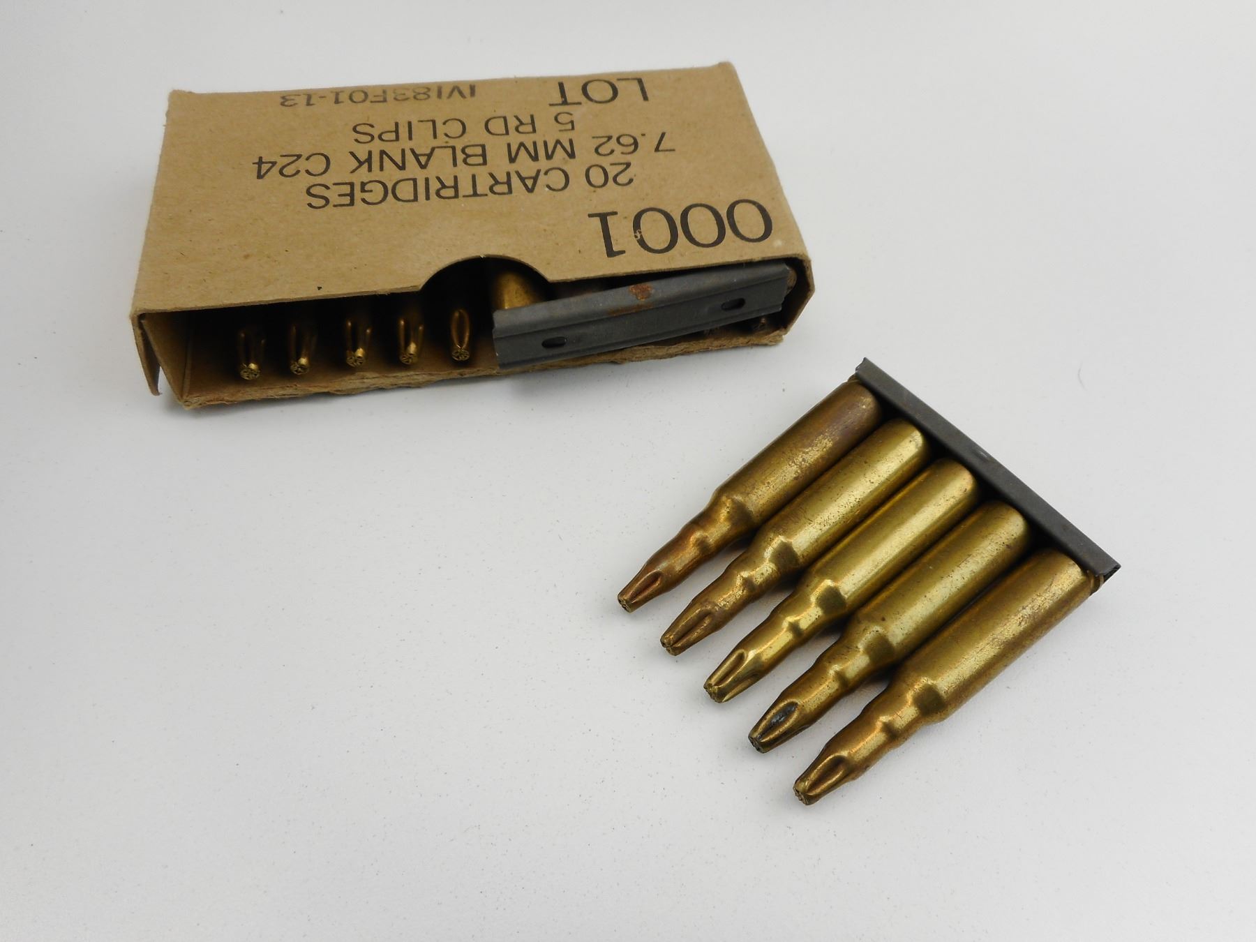 7.62MM BLANKS, PRIMED, ON STRIPPER CLIPS , 20 RNDS 7.62MM PRIMED BLANKS, ON STRIPPER CLIPS