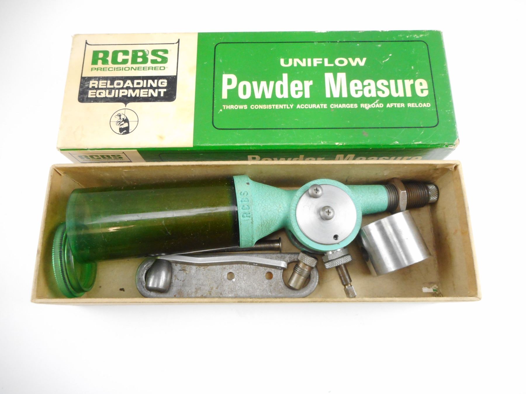 RCBS UNIFLOW POWDER MEASURE LARGE & SMALL DRUMS BOX , RCBS UNIFLOW POWDER MEASURE LARGE & SMALL DRUMS BOX