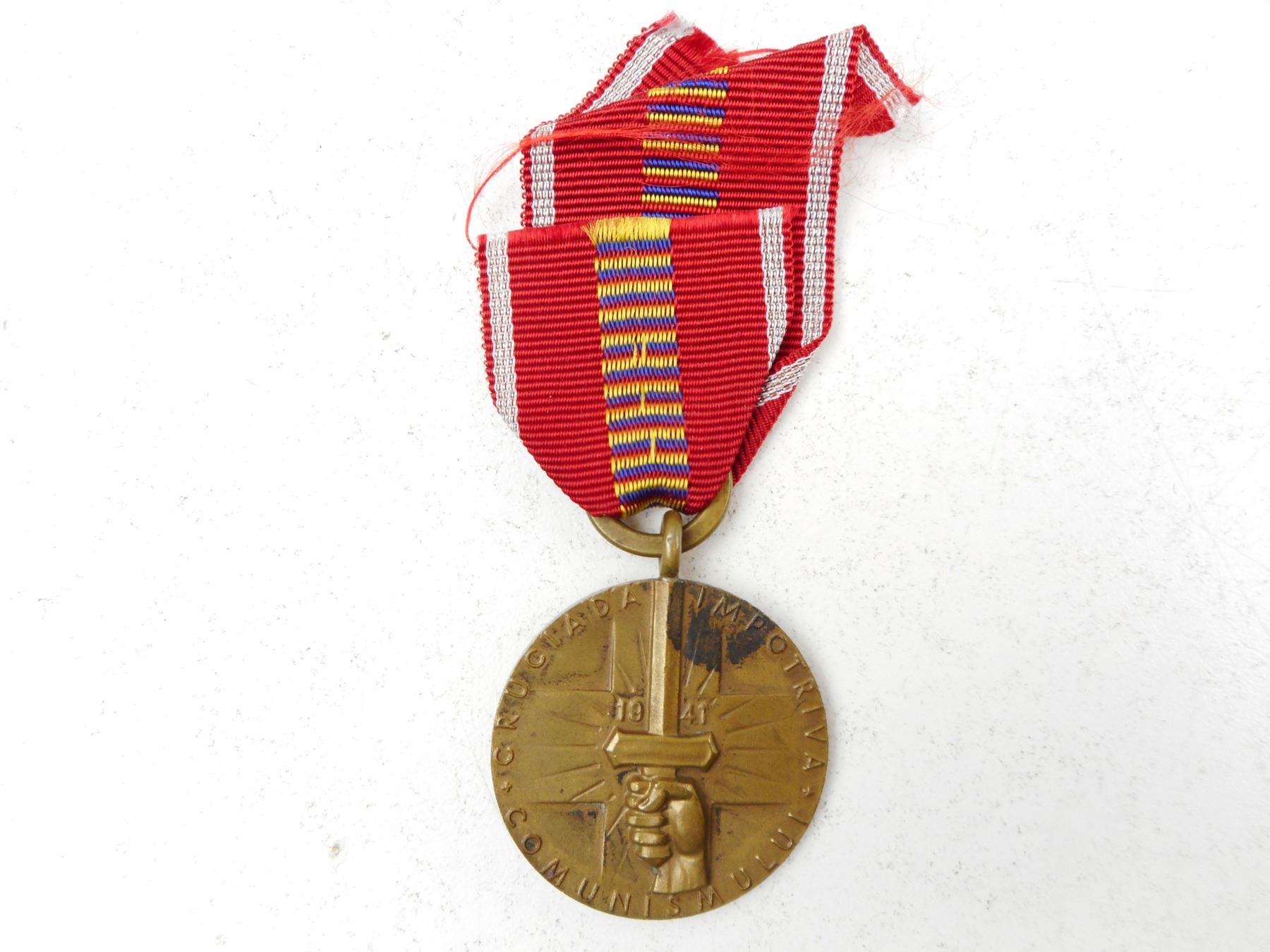 ROMANIAN WWII EASTERN FRONT MEDAL WITH RIBBON , 1941 CRUSADE AGAINST COMMUNISM
