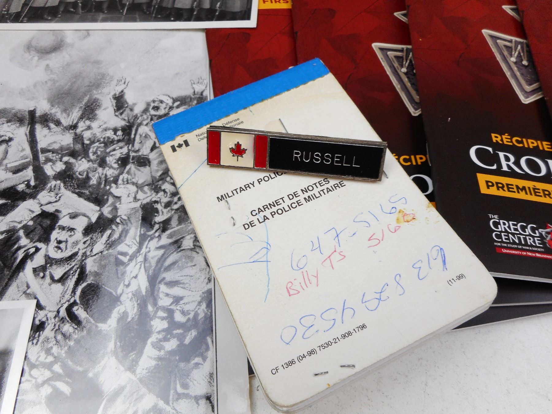 WWI/II INFORMATION/PHOTOS & GEAR , (10) BOOKS: CANADIAN RECIPIENTS OF THE VICTORIAN CROSS 1ST & 2ND WORLD WARS, PHOTOS FROM NATIONAL WAR MUSEUM OF CANADA & PUBLIC ARCHIEVES, MILITARY POLICE NOTEBOOK & GAS MASK COVER