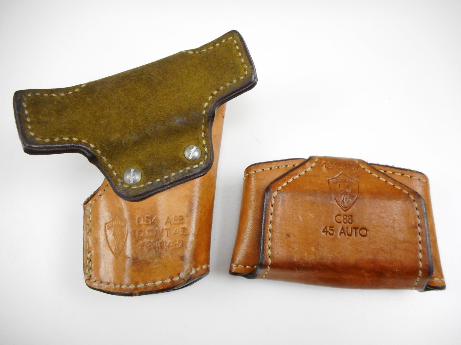 MAGAZINES & SAFARILAND HOLSTERS , (2) MAGAZINES (1) DOUBLE MAGAZINE HOLSTER CC88 45 AUTO & GUN HOLSTER GOVT 45