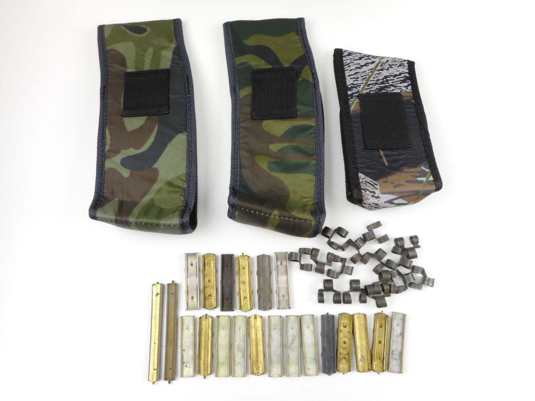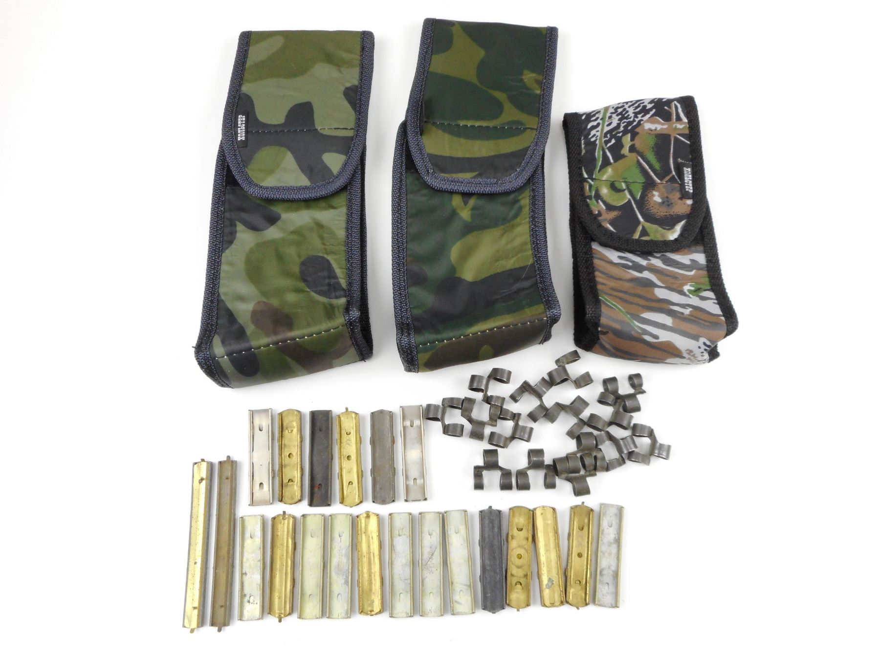 ASSORTED STRIPPER CLIPS, AMMO LINKS & MAGAZINE POUCHES , (2) AK-47 MAGAZINE POUCHS, ASSORTED SIZES OF STRIPPER CLIPS