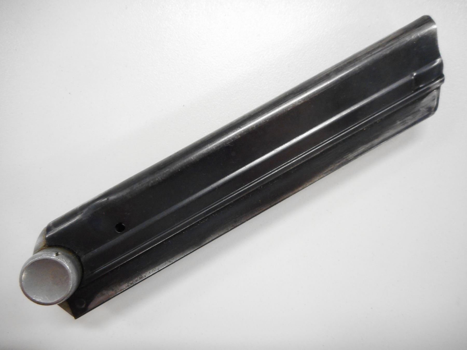 P08 LUGER MAGAZINE , WAFFEN MARKED ON BOTTEM # 457, SMALL DENT NEAR BOTTOM HOLE