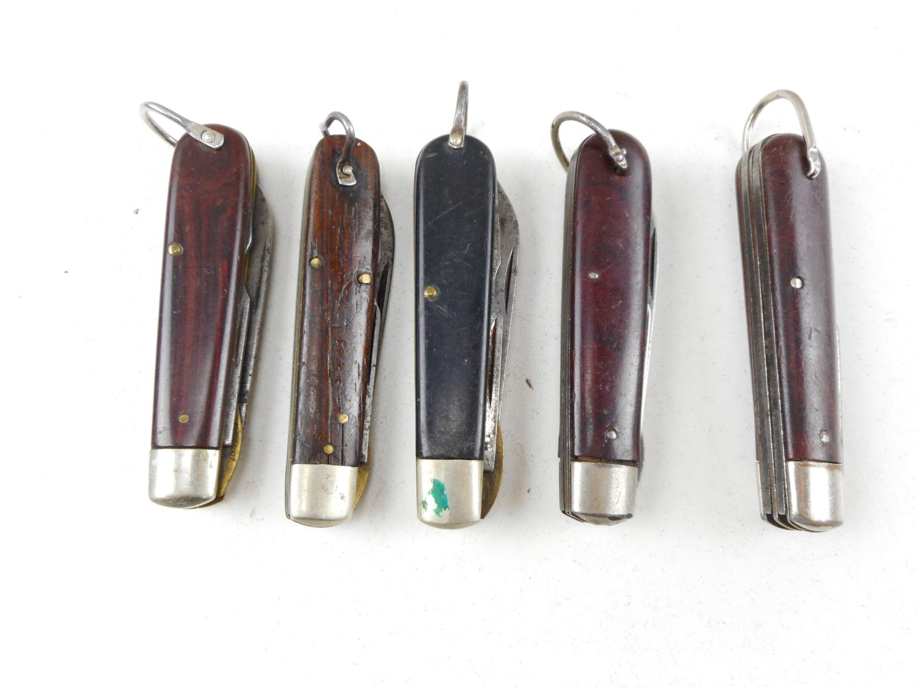 ASSORTED U.S.A. FOLDING KNIVES , ALL 4-PIECE KNIVES, INCLUDES CAMILLUS, ULSTER, IMPERIAL, KINGSTON, & COLONIAL, LOT OF 5