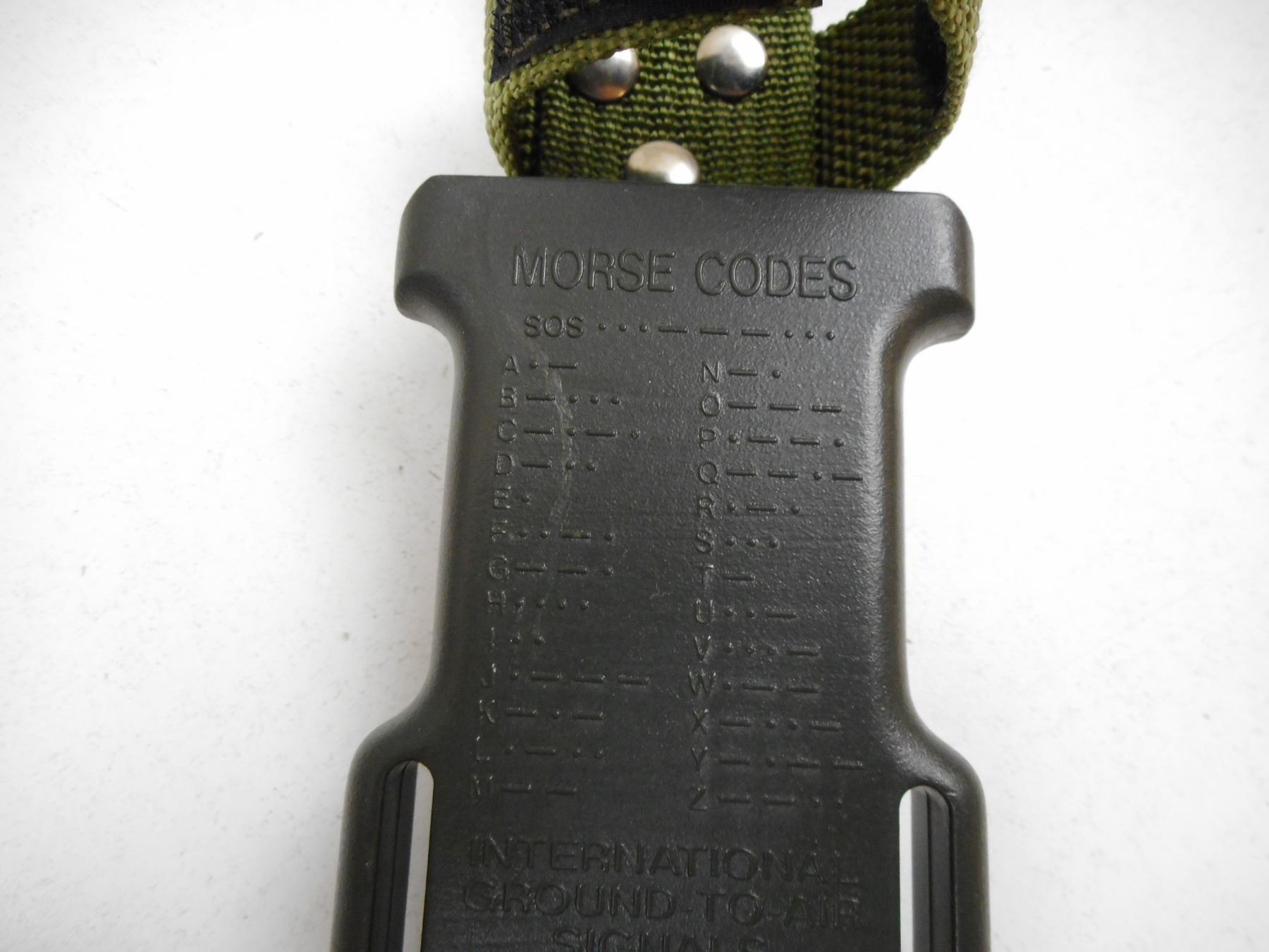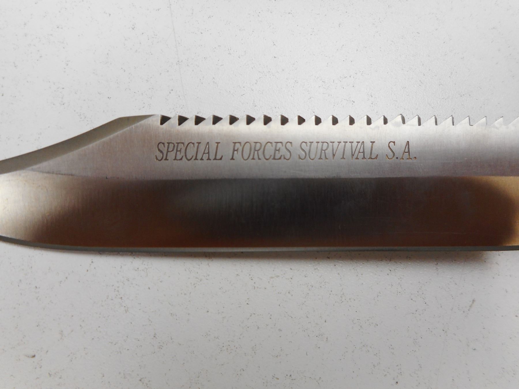 SPECIAL FORCES SURVIVAL KNIFE WITH SHEATH , NO 21-034 SAW BACK BLADE, WITH COMPASS ASSORTED INTERNAL ACCESSORIES, MORSE CODE & SIGNALS ON SHEATH WITH LANYARD & SHARPENING STONE, IN ORIGINAL BOX