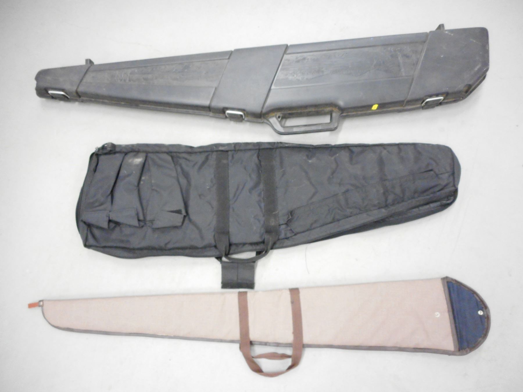 HARD & SOFT RIFLE CASE , (1) HARD CASE PADDED, APPROX. LENGTH 50", (2) SOFT CASES NO PADDING APPROX LENGTHS 41.5"