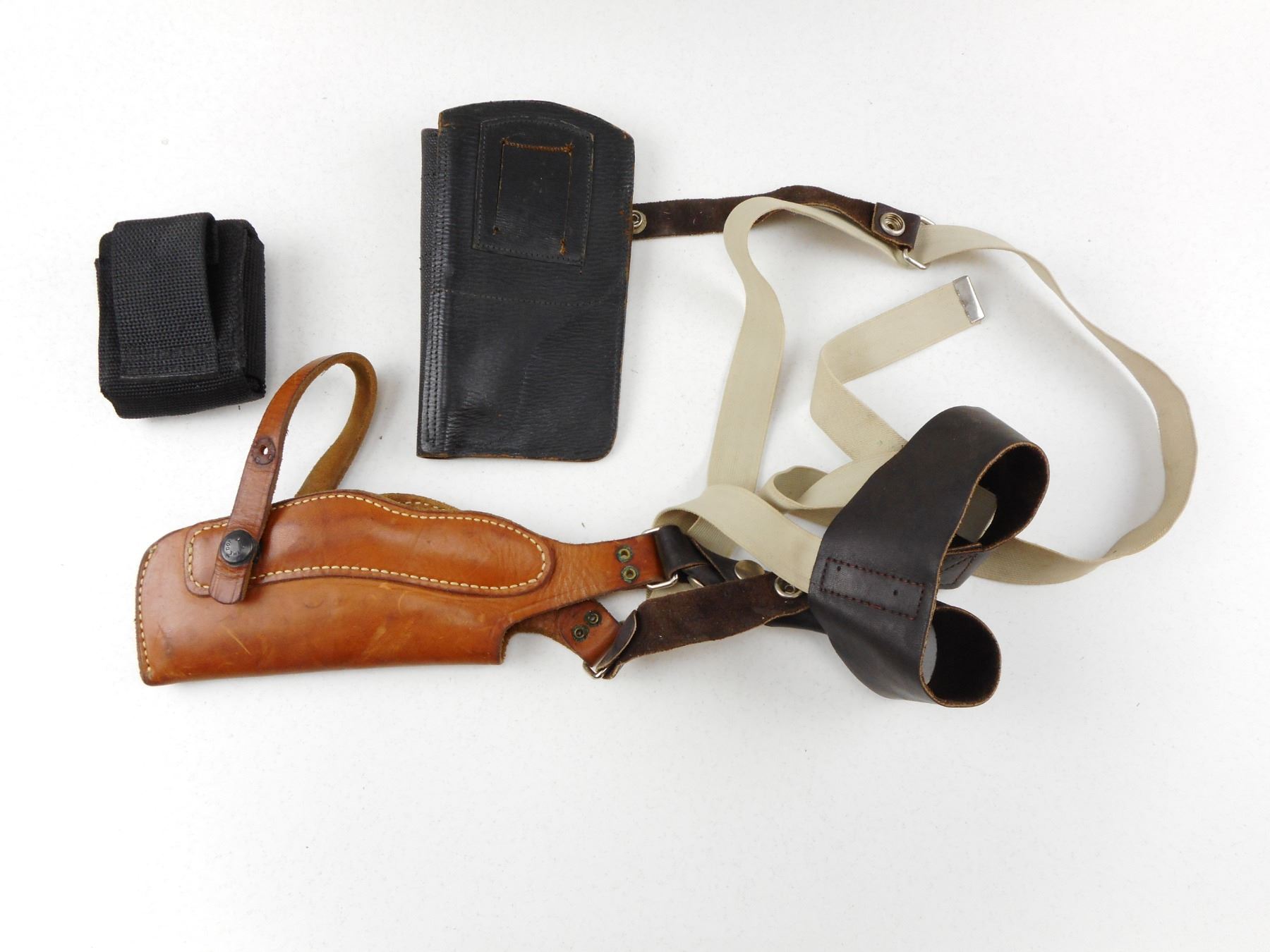 Lot 9001 S&W LEATHER SHOULDER HOLSTER WITH EXTRA HOLSTER & POUCH
