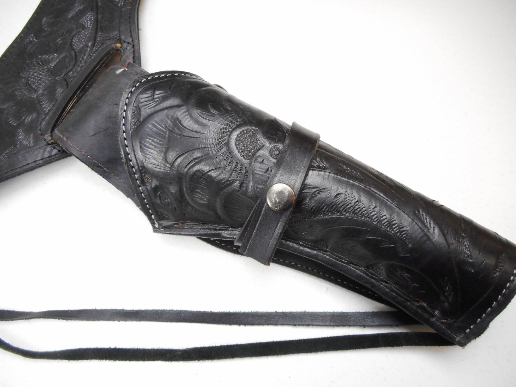 WESTERN STYLE DOUBLE HOLSTER AMMO BELT , APPROX SIZE 42" WITH EMBELLISHED LEATHER & CARTRIDGE LOOPS