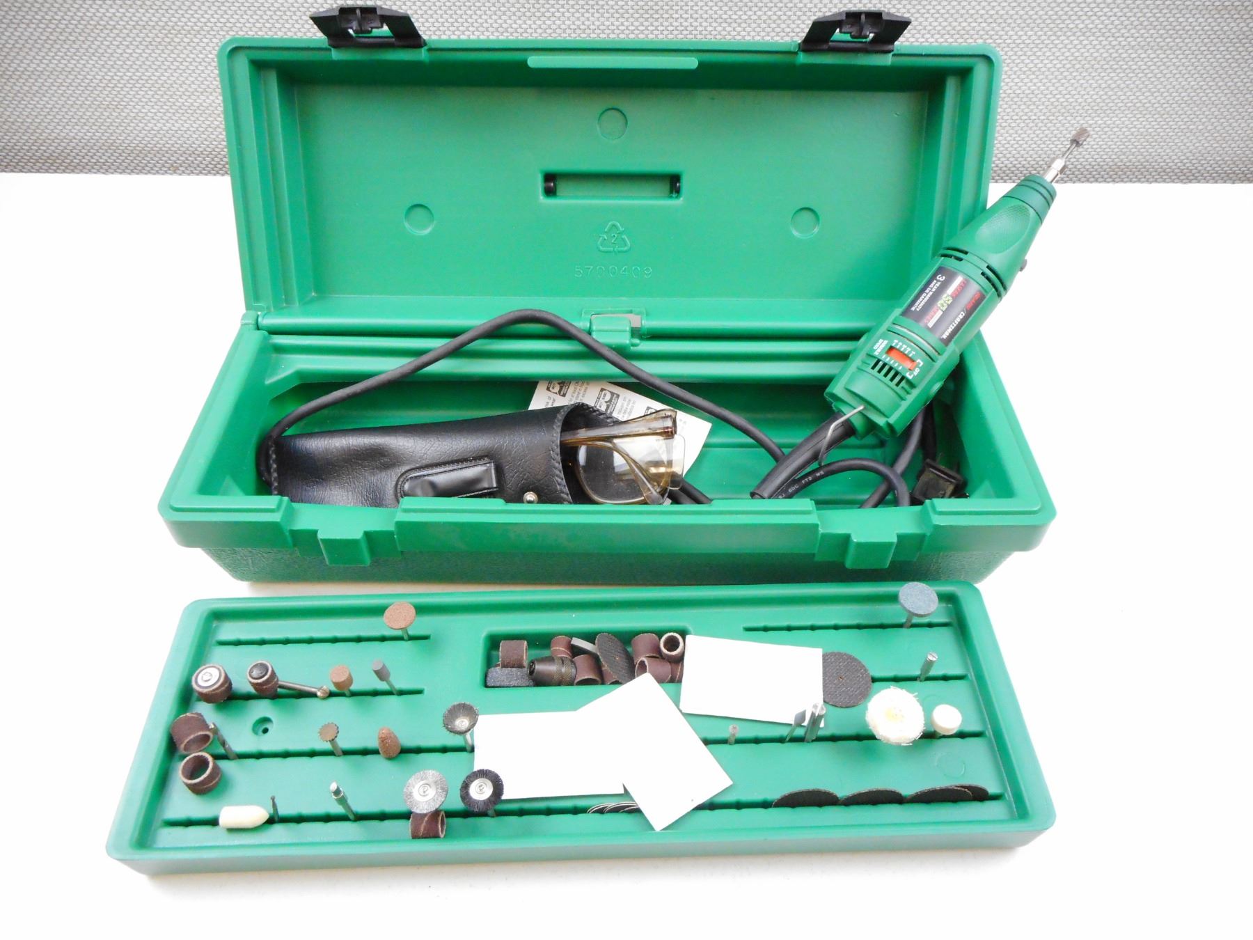 SEARS CRAFTSMAN LASERIE 90 SERIES GRINDER , IN ORIGINAL TOOL BOX WITH ASSORTED TIPS ANS INSTRUCTIONS