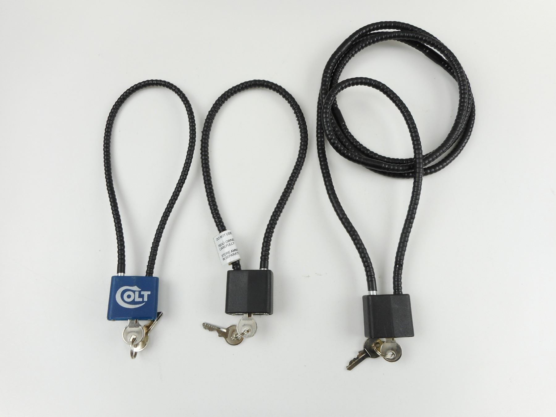 ASSORTED CABLE LOCKS , (1) EXTRA LONG, ALL WITH KEYS, LOT OF 4