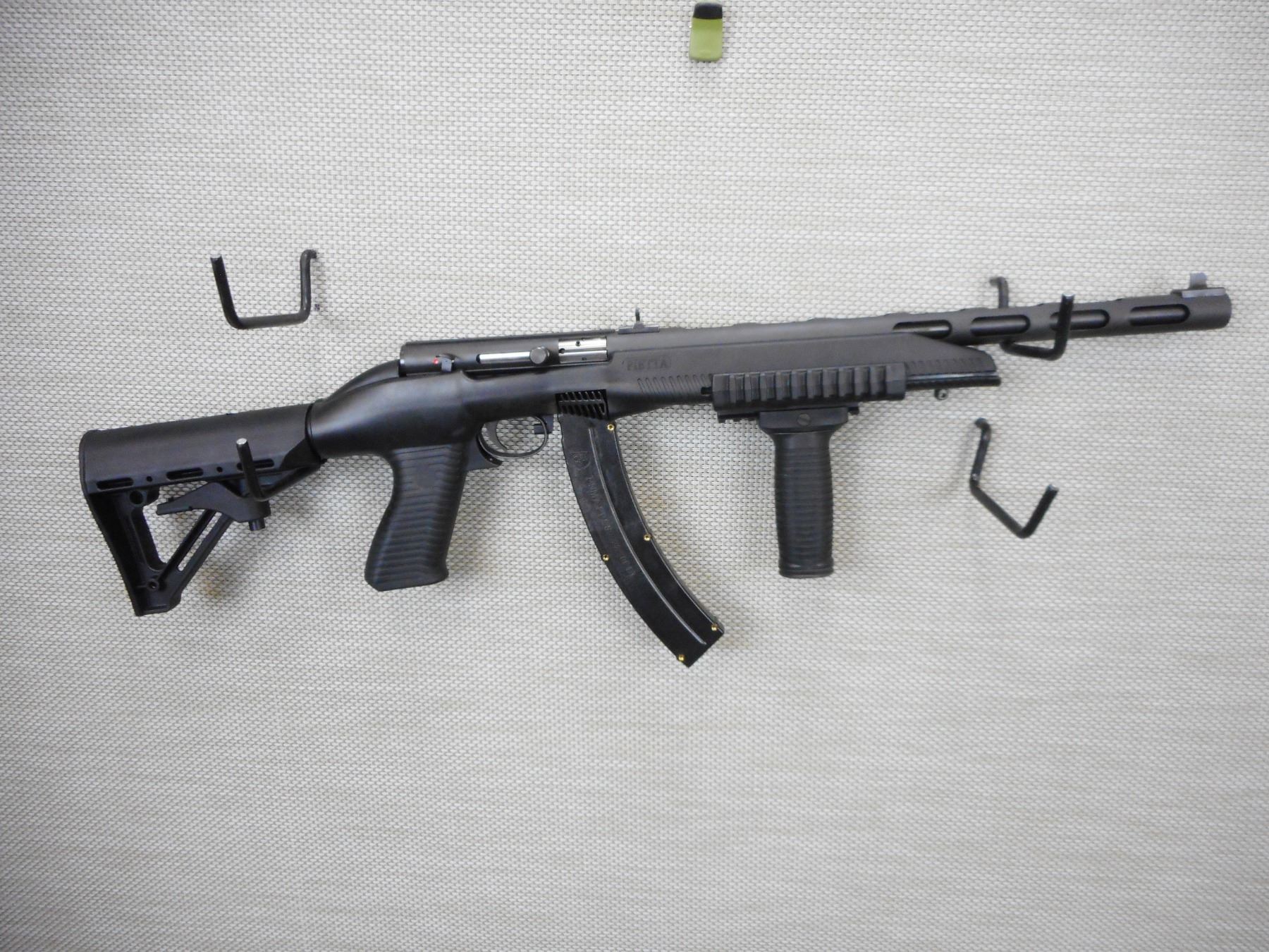 PIETTA , MODEL: PPS/50 , CALIBER: 22 LR , COMES WITH A BOX, MAGAZINE AND MANUAL, VERY GOOD BORE, BLADE FRONT AND FIXED REAR SIGHTS, FRONT AND REAR PISTOL GRIPS, COLLASIBLE BUTT STOCK, BARREL AND STOCK DO NOT LINE UP, UNSURE IF OTHER PARTS ARE MISSING, WHILE THIS FIREARM APPEARS TO BE NEW OR HAVE LITTLE USE IT IS A WARRANTY CENTRE RETURNS. THE PROBLEM COULD EITHER NOT BE RESOLVED OR REASON FOR RETURN CONDITION WAS INCONSISTENT OR NOT OBSERVED. THIS ITEM IS SOLD STRICTLY AS IS, THERE WILL BE NO FACTORY WARRANTY OR CONCESSION OF ANY KIND. THIS ITEM SHOULD BE PURCHASED AS A PARTS GUN ONLY AND NOT EXPECTED TO BE COMPLETE OR TO PERFORM AS AN O.E.M. MODEL , SERIAL # PP008577 , ACTION: SEMI AUTOMATIC RIFLE , BARREL LENGTH: 16" , CONDITION: PARTS GUN